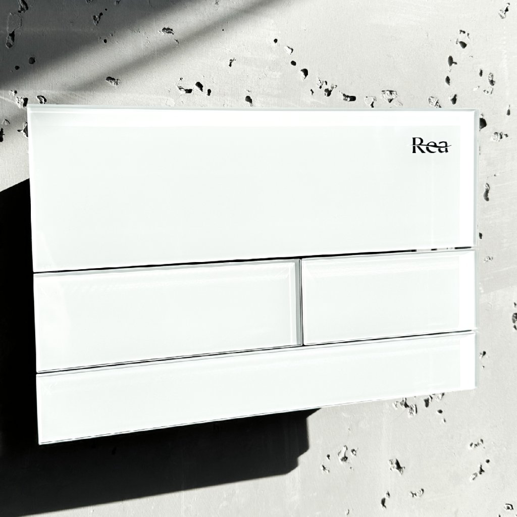 Rea, Podomítkový WC systém K011A-Q + bílé skleněné tlačítko typ T, KPL-E0052
