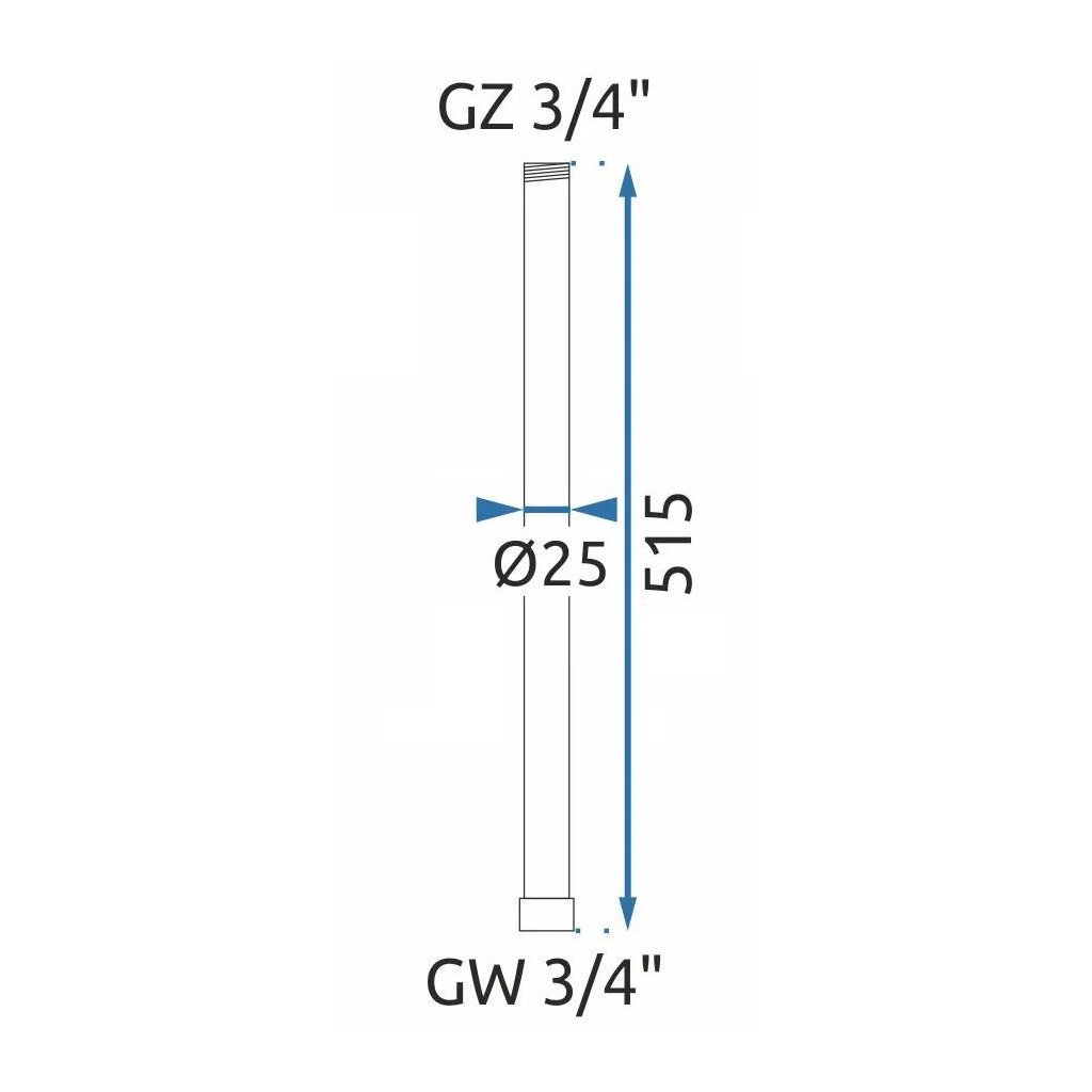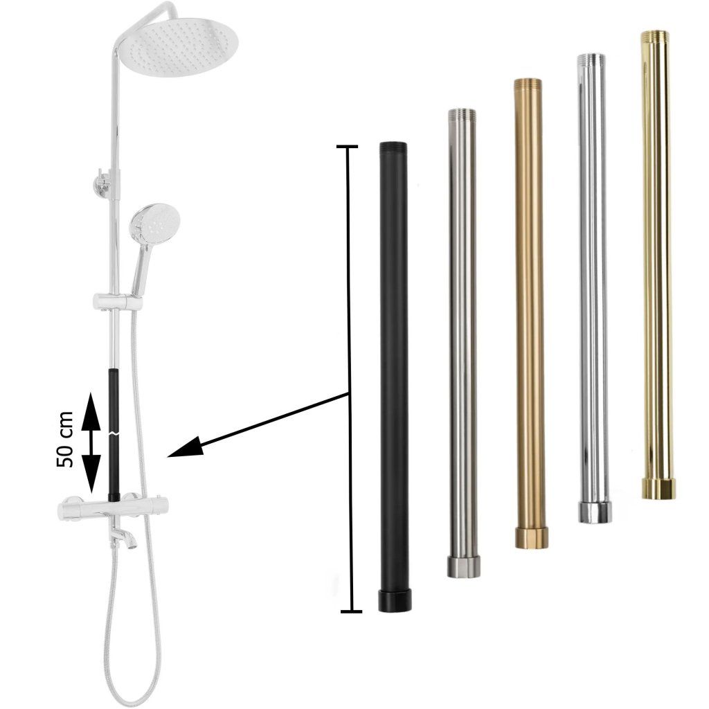 Prodlužovací adaptér - nástavec umožňuje umístit dešťovou sprchu výše než ve standardní povrchové vaně a sprchové soupravě. Prodloužení je vyrobeno z mosazi.