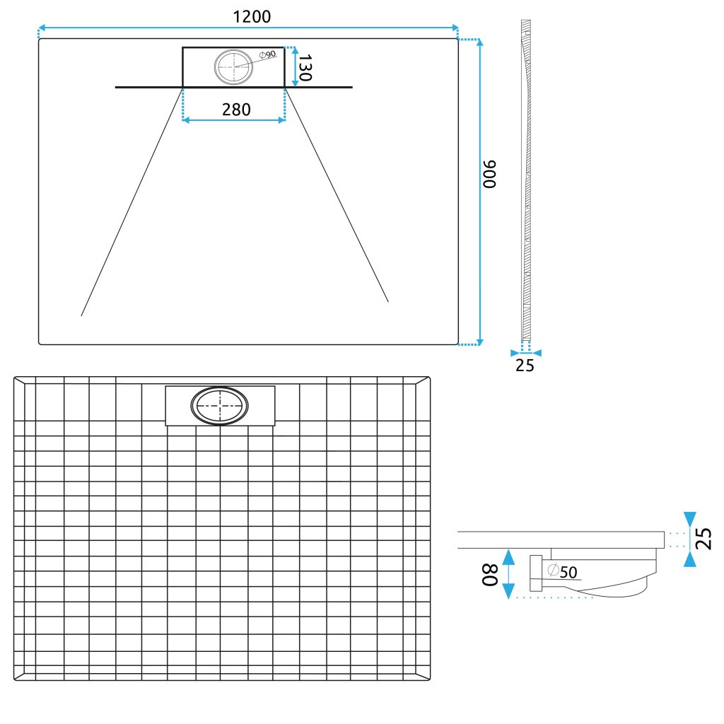 Rea, Sprchová vanička REA Bazalt long 90x120 - černá, REA-K3904