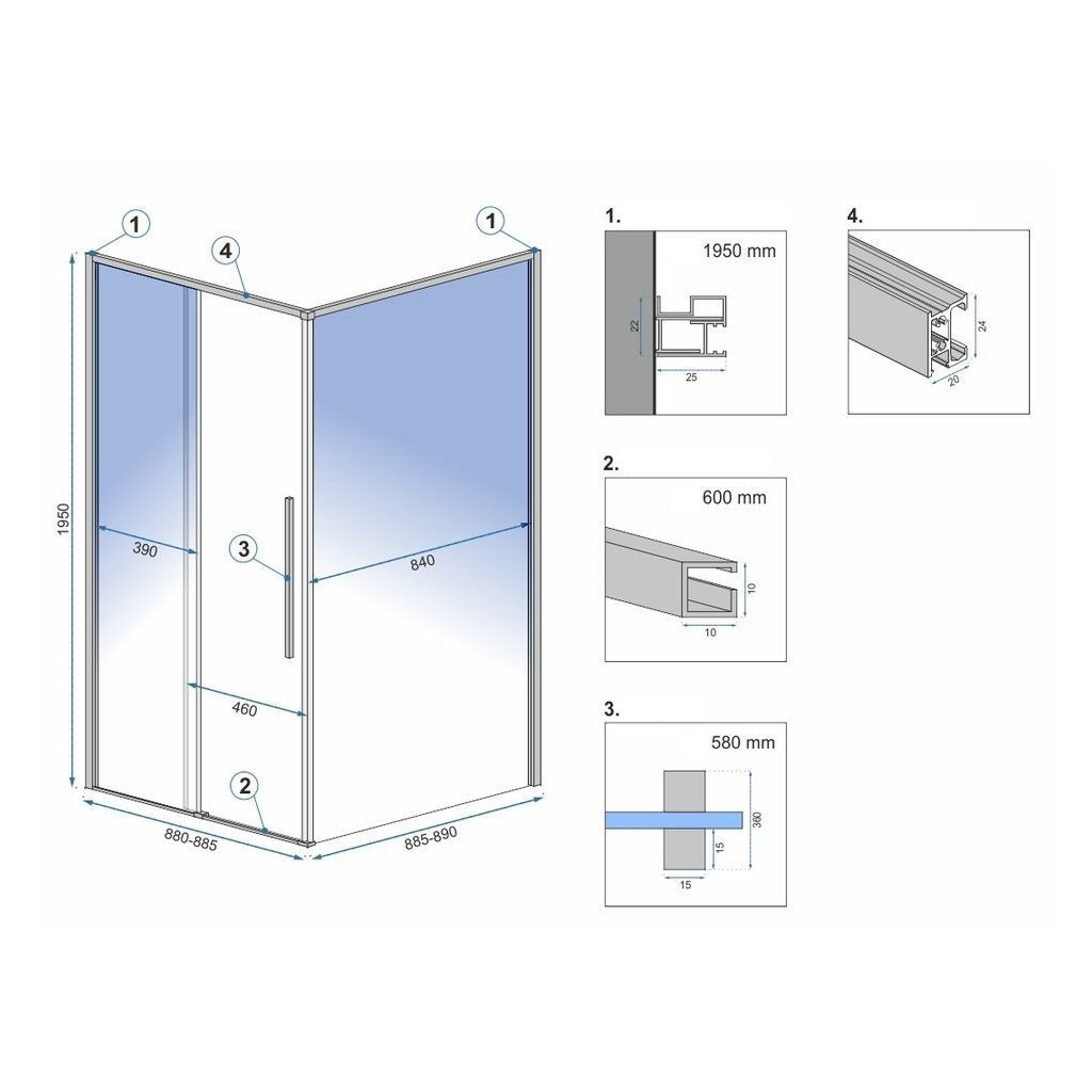 | Typ: | Rohový - 1-stranný, posuvné dvere |