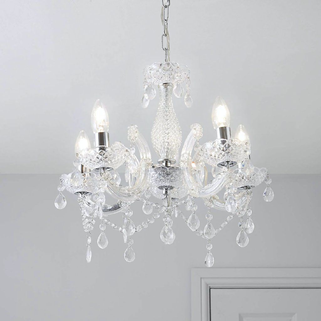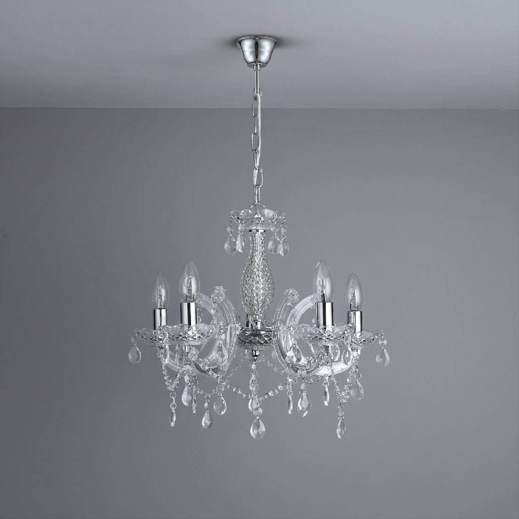 Klasický lustr EBT004-5CP Pětiramenný chromový lustr s čirými přívěsky vnese do interiéru reprezentativní atmosféru. Vyvážený tvar svítí rovnoměrně, výšku lze nastavit až do 123 cm. ✔️ pět ramen – harmonické osvětlení ✔️ čiré přívěsky s krystalovým efektem ✔️ nadčasový chrom ✔️ nastavitelná výška do 123 cm ✔️ průměr 44 cm – výrazný, ale lehký Kovová kostra a fasetované transparentní prvky krásně lámou světlo. Oblá ramena, misky a kaskády kapek dodávají hloubku. Poměr (Ø44 cm, max. výška 123 cm, kabel 70 cm) působí vzdušně. ip20 – do interiéru. Hodí se nad jídelní stůl, do obývacího pokoje, předsíně i ložnice; funguje ve stylech modern classic, glamour a art déco. Zvolte EBT004-5CP a povyšte prostor jedním výrazným prvkem.Doplňkové parametry