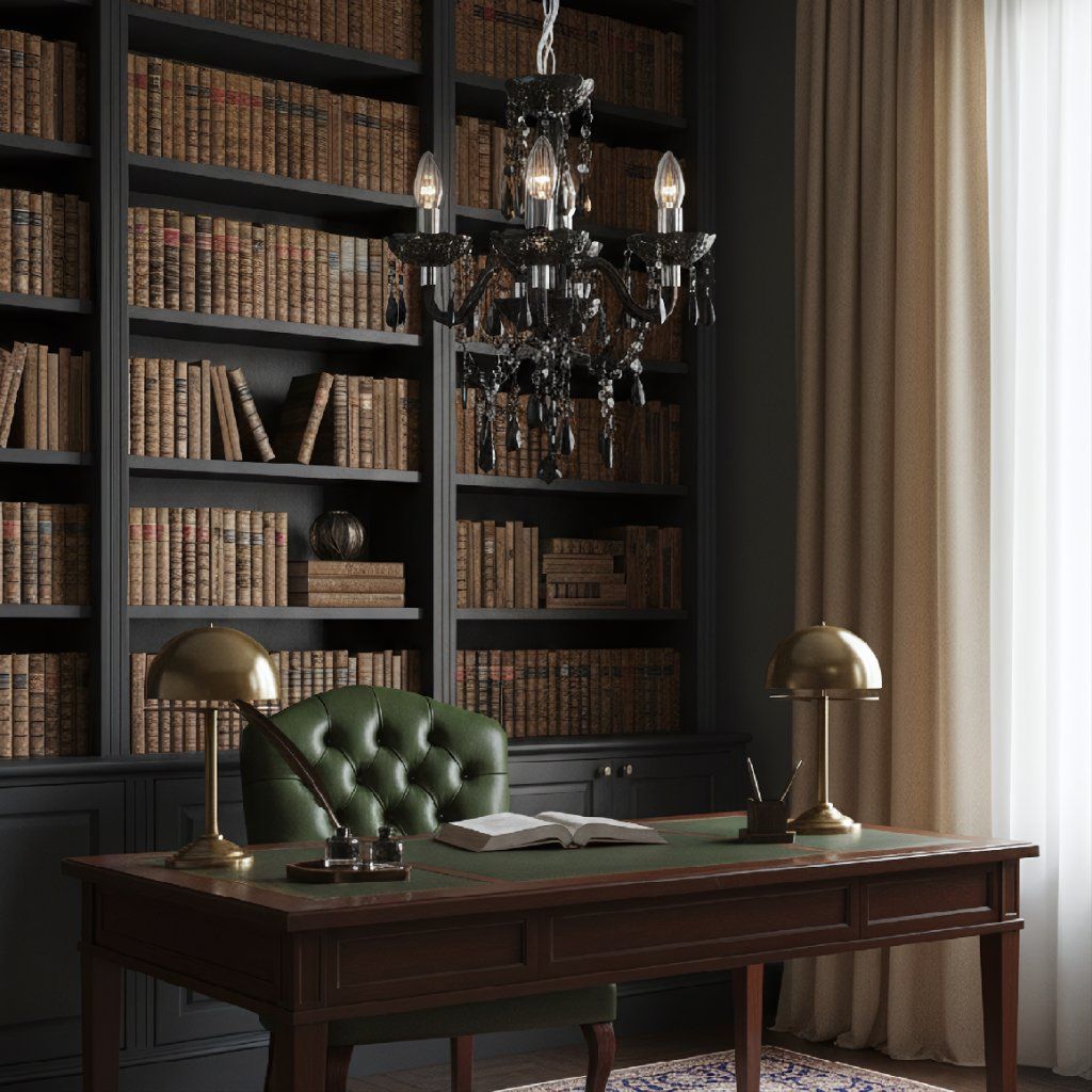 Stylový černý lustr se třemi světelnými body spojuje klasiku s moderním charakterem. Matná černá povrchová úprava dodává eleganci a výraz, dekorativní přívěsky krásně odrážejí světlo a jemně prosvětlují interiér. Tvar inspirovaný tradičními svícny navodí jedinečnou atmosféru a učiní z lampy dominantní prvek místnosti. Skvělý do obývacího pokoje, jídelny či ložnice – pro více stylu, hloubky a moderního šiku.Doplňkové parametry