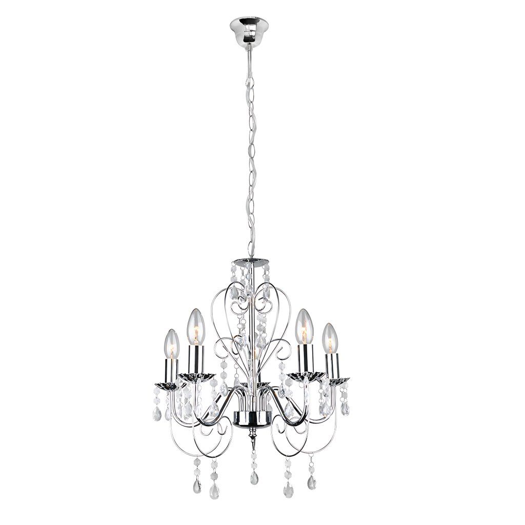 Stylový lustr s pěti světelnými body je dokonalou kombinací klasiky a jemného lesku. Kovová konstrukce vytváří elegantní tvar a dekorativní plastové krystalky jemně odrážejí světlo, čímž vytváří příjemný a útulný efekt. Toto svítidlo se stane nejen zdrojem světla, ale také výjimečnou ozdobou interiéru. Model se výborně hodí do obývacího pokoje, jídelny, ložnice nebo prostorné haly a dodá prostoru jedinečný charakter. Lustr se krásně kombinuje s interiéry ve stylu glamour, klasickém i moderním.Doplňkové parametry