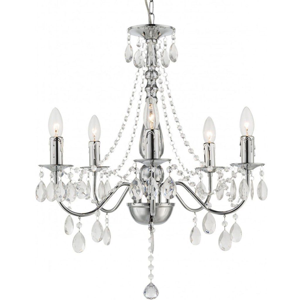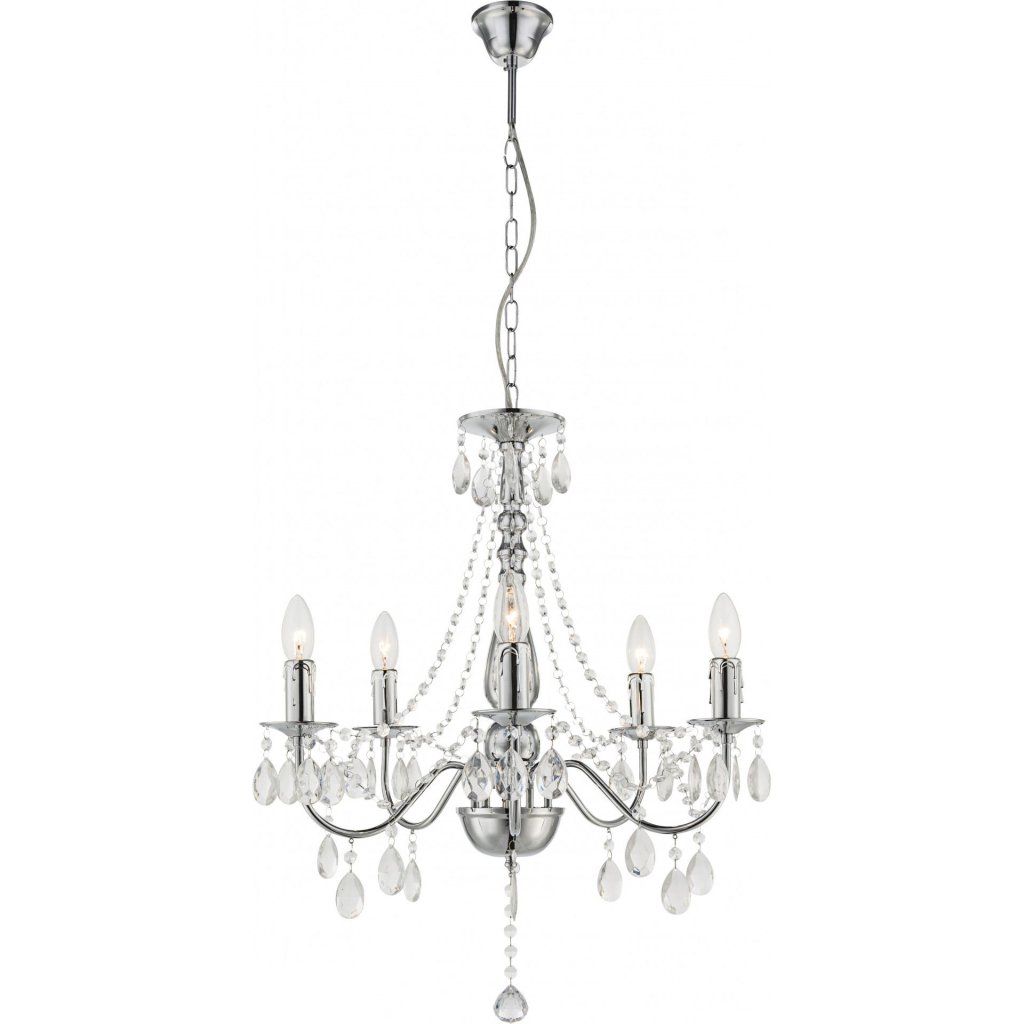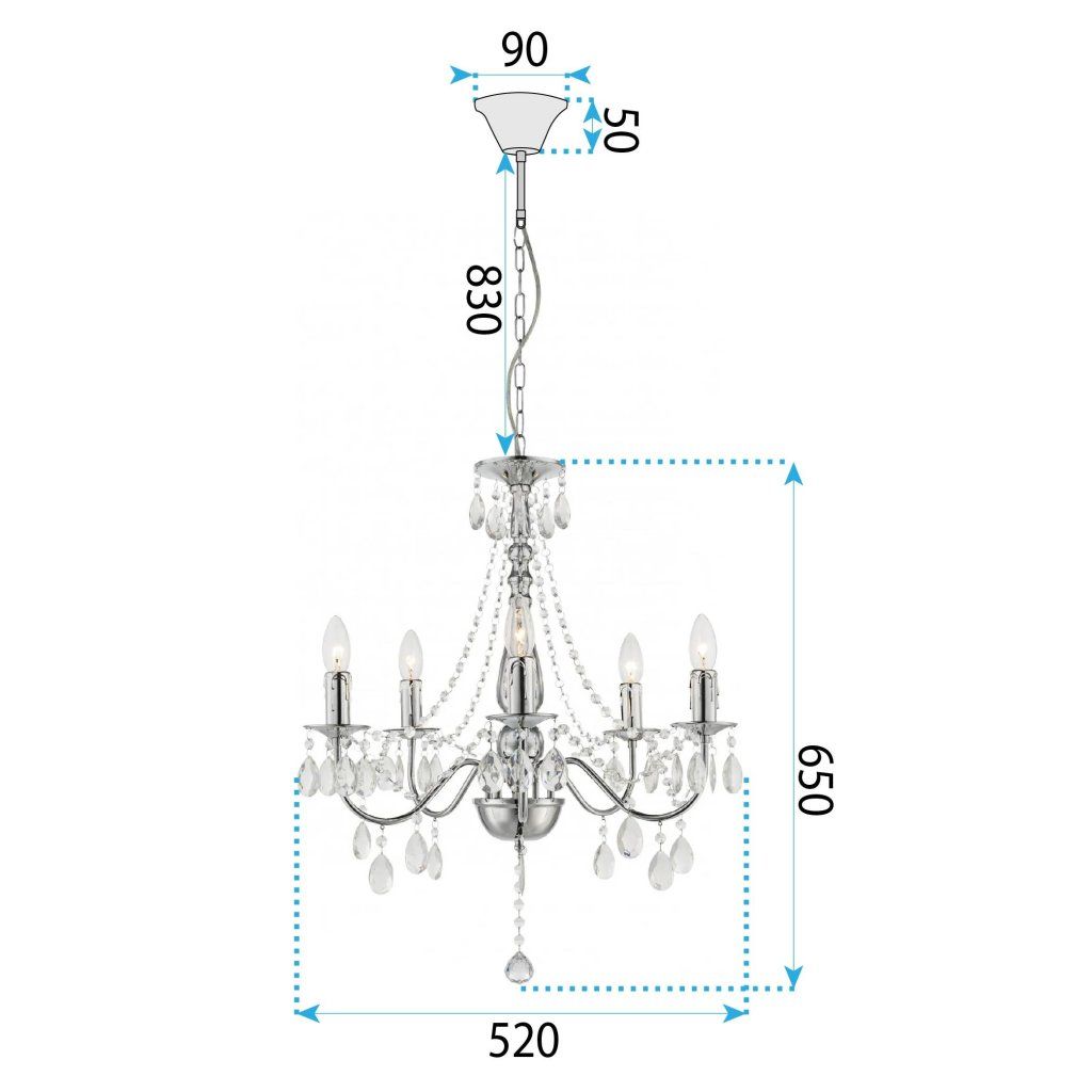 Stylový závěsný lustr s pěti světelnými body je dokonalým spojením klasiky a moderní elegance. Kovová konstrukce s chromovým leskem vytváří pevnou základnu pro dekorativní plastové závěsy, které jemně odrážejí světlo a dodávají interiéru výjimečný lesk. Lampa se skvěle hodí do obývacího pokoje, jídelny, chodby nebo ložnice, kde se stane nejen zdrojem světla, ale také ozdobou prostoru. Díky klasickému uspořádání ramen a dekorativním řetězům a závěsům tento model dokonale zapadne do stylu glamour, klasického nebo moderního s nádechem elegance. Pět světelných zdrojů E14 zajišťuje rovnoměrné osvětlení místnosti. Není to jen svítidlo, ale také dekorativní prvek, který se stane centrem každého interiéru.Doplňkové parametry