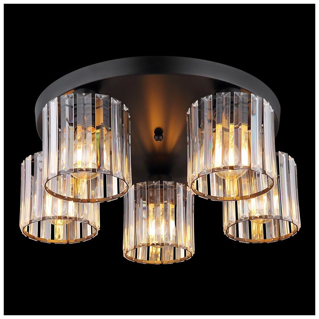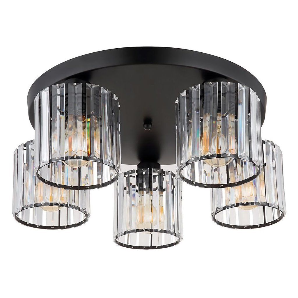 Elegantní stropní svítidlo s pěti světelnými body spojuje moderní design a jemný lesk. Černý kovový základ krásně kontrastuje s transparentními stínítky s dekoračními krystaly, které příjemně rozptylují světlo a vytvářejí útulnou, ale luxusní atmosféru. Svítilna je ideální do obývacího pokoje, ložnice či jídelny – je funkčním zdrojem světla i stylovým prvkem interiéru. Klasická forma v moderním podání zapadne do elegantních i minimalistických prostor a dodá jim jedinečný charakter a lesk.Doplňkové parametry