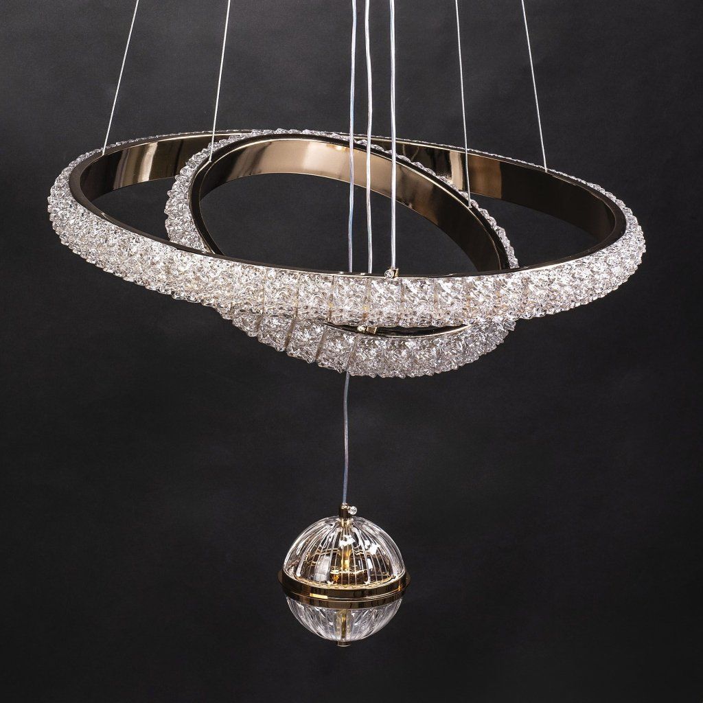Tato působivá LED lampa spojuje dekorativní charakter s moderním stylem a vytváří jedinečný světelný akcent v obýváku, jídelně nebo elegantní hale. Světlo svítí na více místech – kolem krytky, v centrální kouli a uvnitř kruhů – čímž vzniká výrazný, vícerozměrný efekt. Průhledné, strukturované plastové prvky krásně rozptylují světlo a dodávají lampě šperkový lesk. Model upoutá svým propracovaným tvarem a většími rozměry, přičemž kruh o průměru 50 cm vytváří dominantní bod místnosti. Nosné kabely dodávají konstrukci lehkost a celkový dojem je moderní a mimořádně elegantní. Jedná se o ideální volbu pro ty, kteří hledají luxusní dekorativní LED osvětlení s příjemným, atmosférickým světlem.Doplňkové parametry