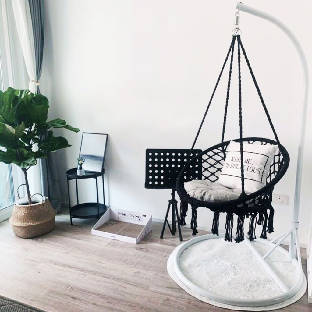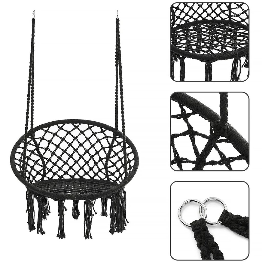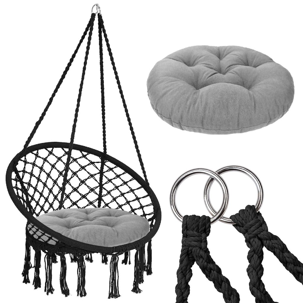 Rea, Závěsné boho křeslo s polštářem černé 490129A, OGR-03542