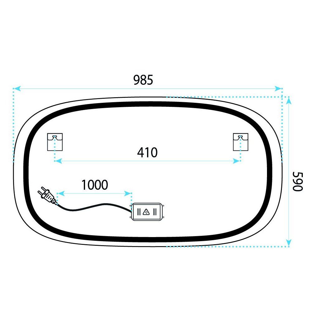 Napájení je řešeno kabelem se zástrčkou do standardní síťové zásuvky – bez nutnosti zasahovat do domácí elektroinstalace nebo připravovat samostatný elektrický obvod. Instalace je jednoduchá: zrcadlo zavěsíte na zeď, zapojíte do zásuvky a ihned je plně funkční. Hloubka celého produktu dosahuje pouhých 20 mm – navzdory šířce 100 cm leží zrcadlo těsně u stěny.