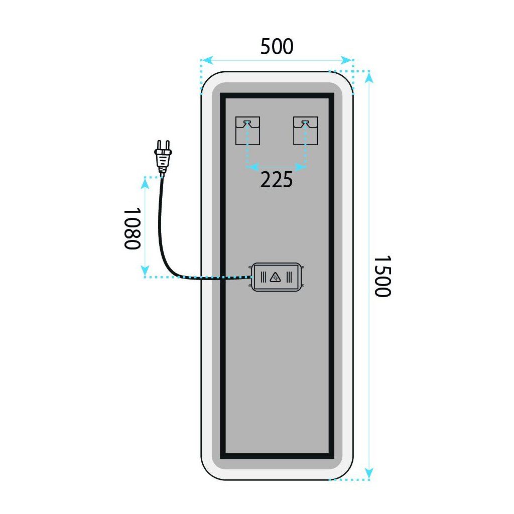 Napájení je řešeno kabelem se zástrčkou do standardní síťové zásuvky – bez nutnosti zasahovat do domácí elektroinstalace nebo připravovat samostatný elektrický obvod. Pro zrcadlo v předsíni, šatníku nebo ložnici, kde pevná elektrická přípojka u stěny nemusí být, je to velkou praktickou výhodou.