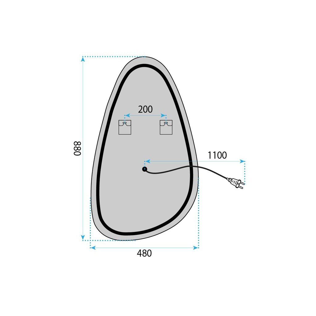 Tvar kapky Asymetrická forma 500×900 mmLED podsvícení hrany — měkká záře po celém obvodu