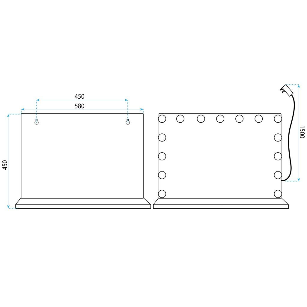 580 × 450 mm Černý rám Hollywood LED žárovkyRegulace barvy světla a stmívání