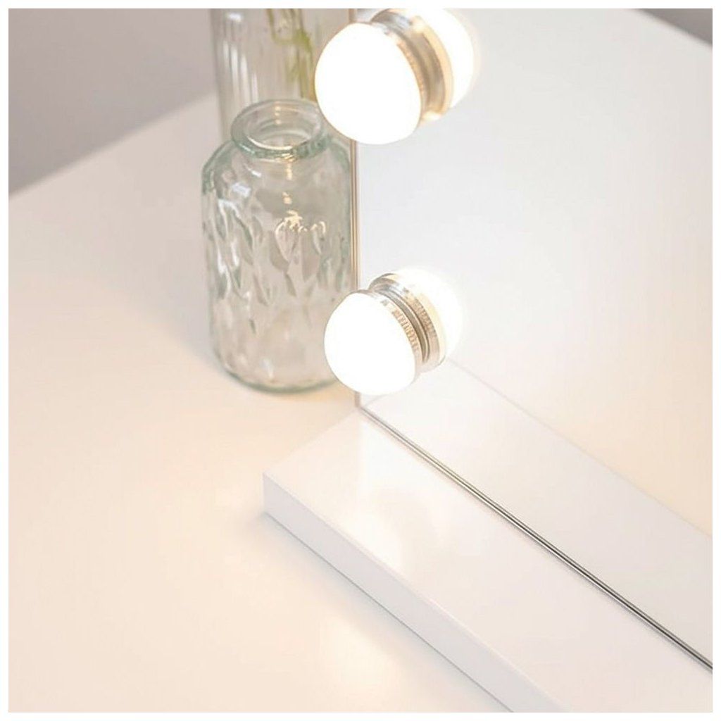 Bílý lesklý rám z plastu a kovu dodává zrcadlu čistý, glamour charakter, který se hodí jak do moderní ložnice se šatníkem, tak do dedikovaného dresinku roomu. Zrcadlo je dekorativním objektem i tehdy, když nesvítí.