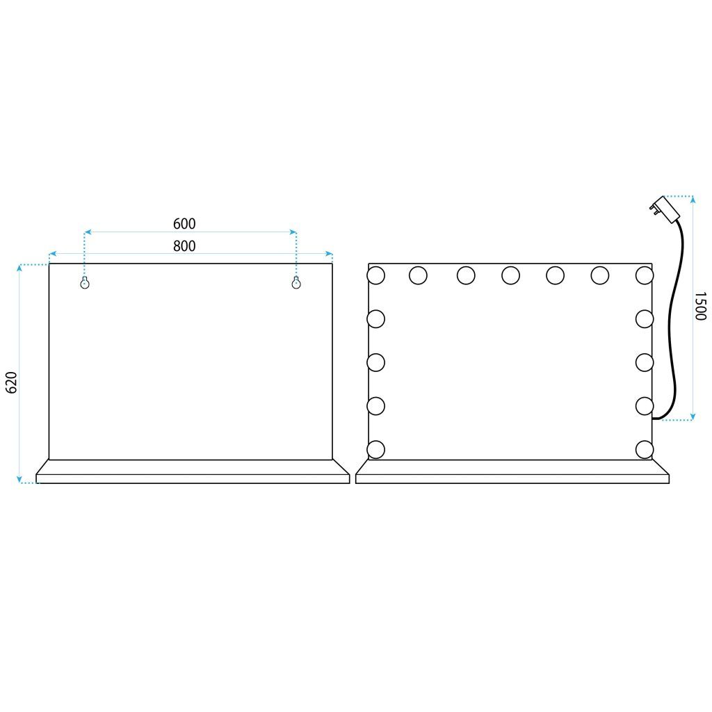 Formát 800 × 620 mm LED žárovky v rámu Hollywood glamourRegulace barvy světla a stmívání