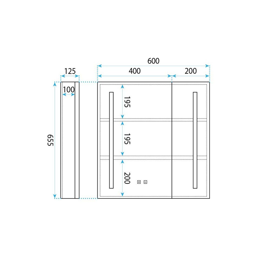 Rozměry 600 × 650 mm jsou navrženy pro standardní zónu nad umyvadlem – skříňka pokrývá právě tolik stěny, kolik potřebujete pro pohodlné každodenní rituály, aniž by dominovala celé koupelně.
