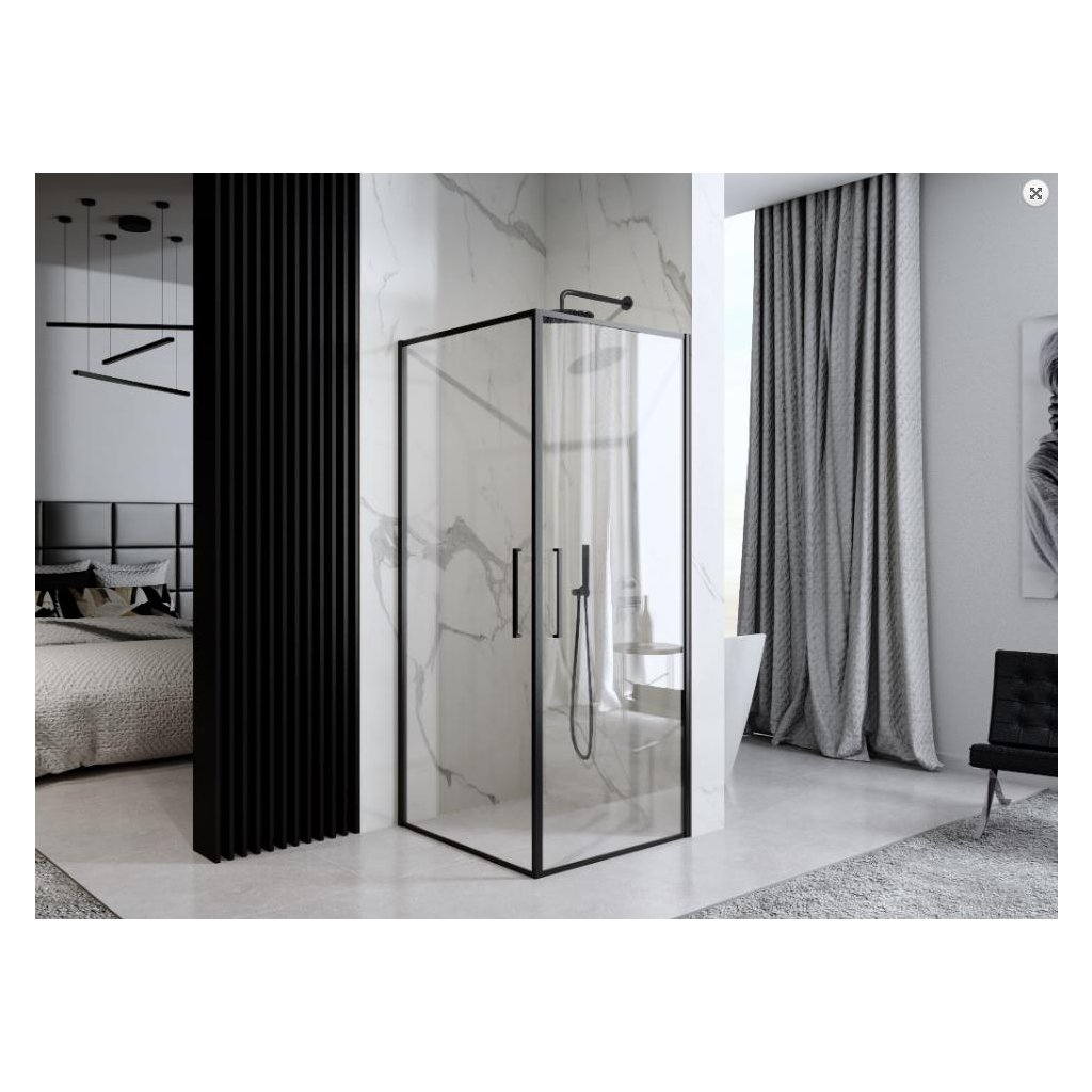Rea Abra Matte, 2-křídlový sprchový kout 90 (dveře) x 90 (dveře) x 195 cm, 6mm čiré sklo, černý profil, REA-K5502