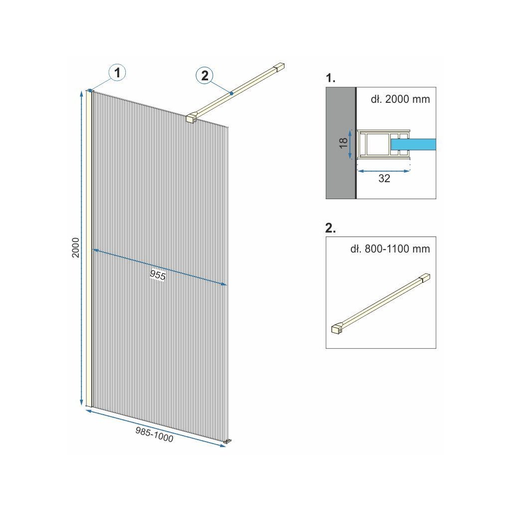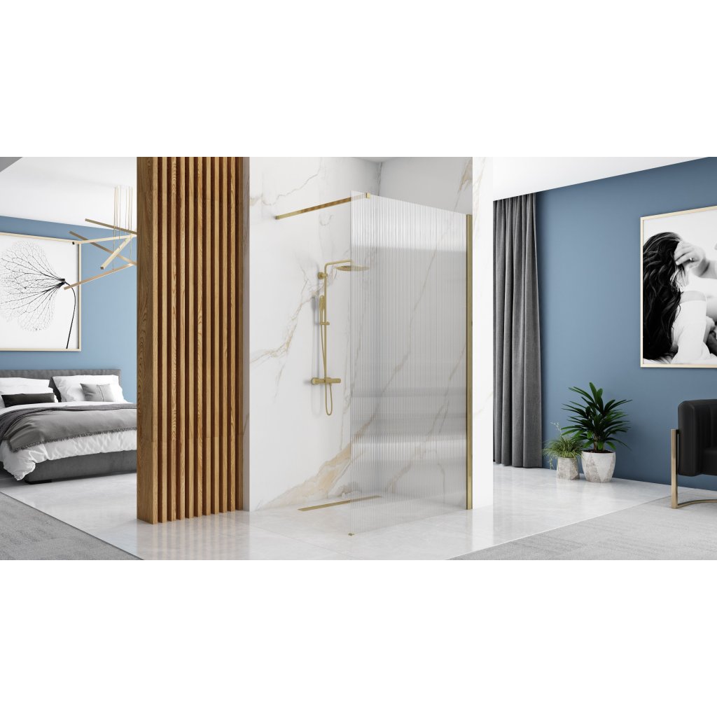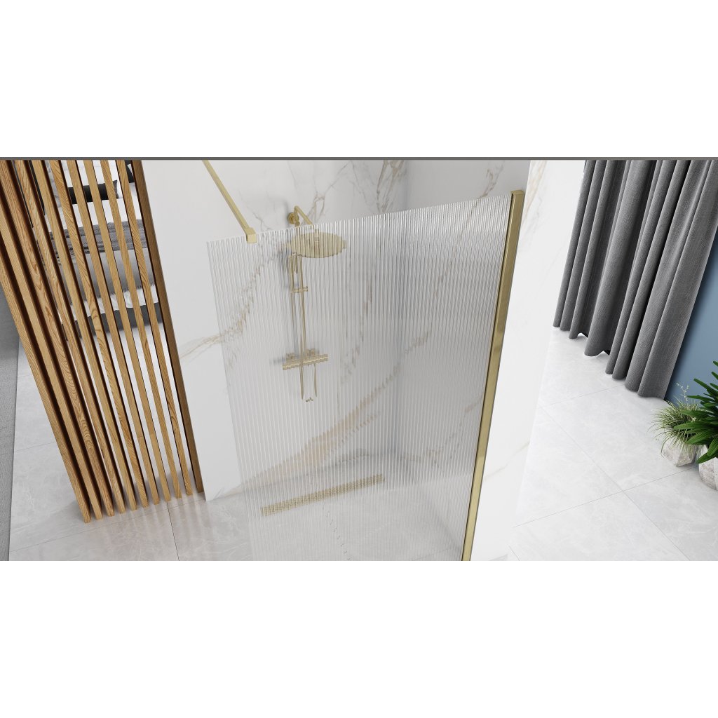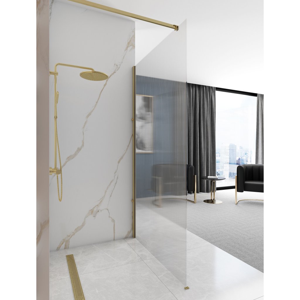 Stěna je vyrobena z kvalitního vlnitého tvrzeného skla . Je vhodný pro instalaci na sprchovou vaničku nebo podlahu s lineárním odtokem.