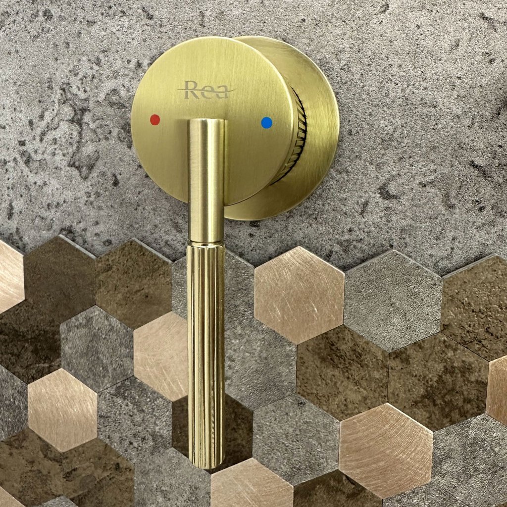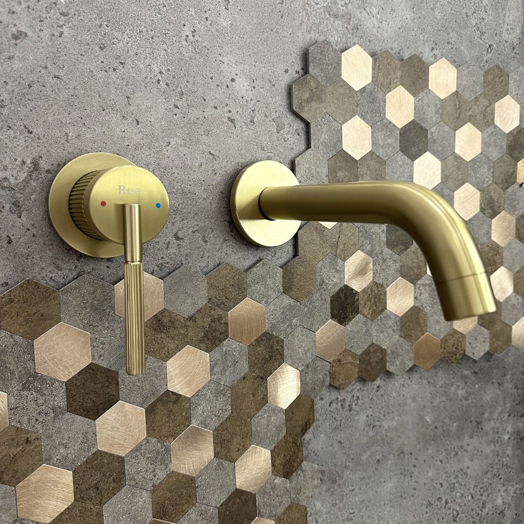 Rea Argon, umyvadlová baterie pod omítku + montážní systém BOX, zlatá matná, REA-B7808