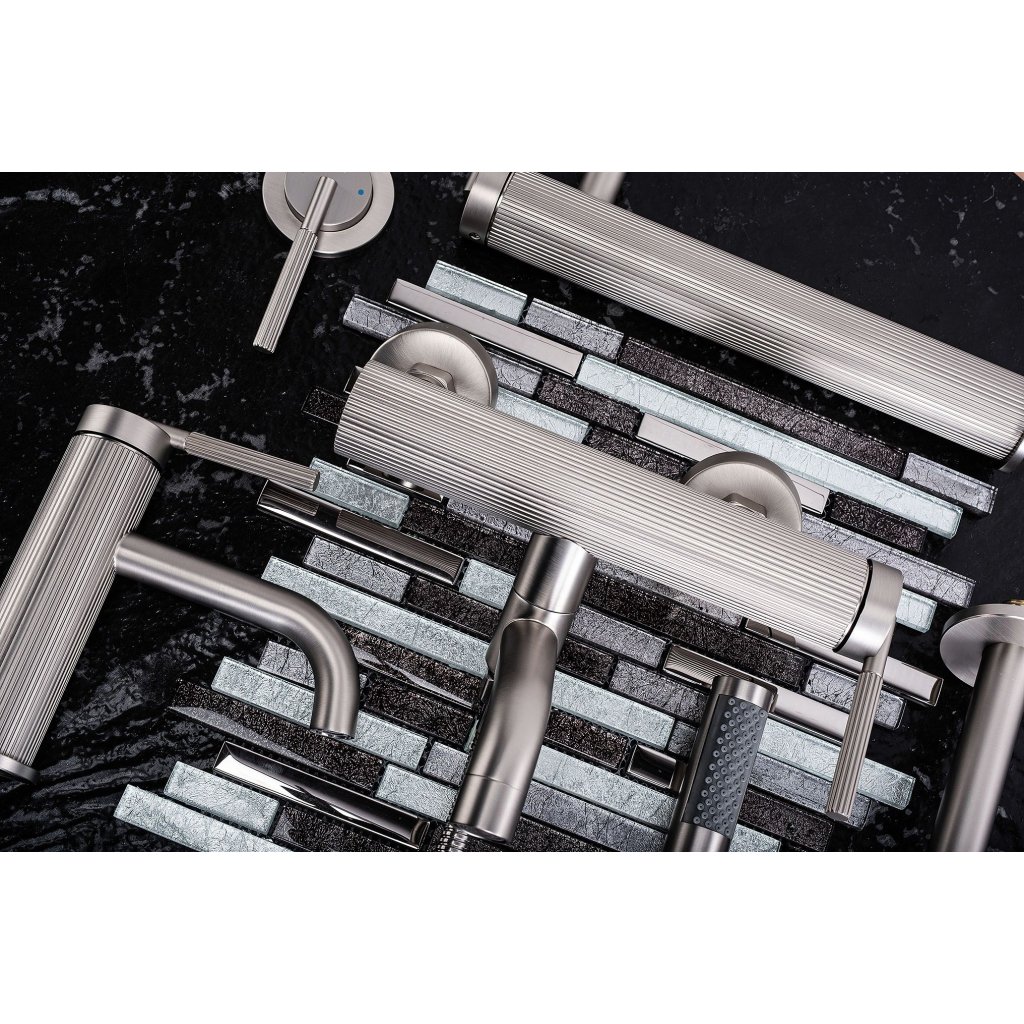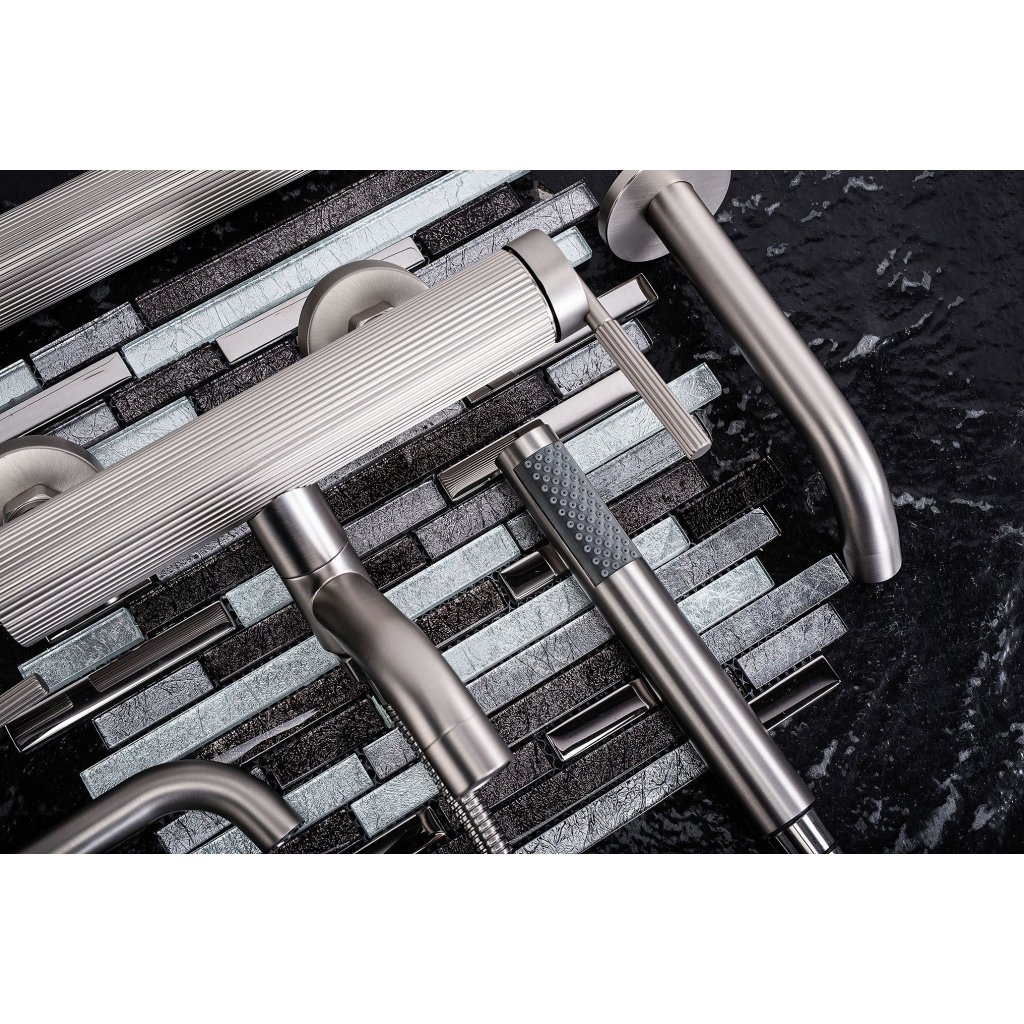 - Elegantní design: Broušená ocel v kombinaci s drážkovanou povrchovou úpravou zdůrazňuje moderní styl koupelny.