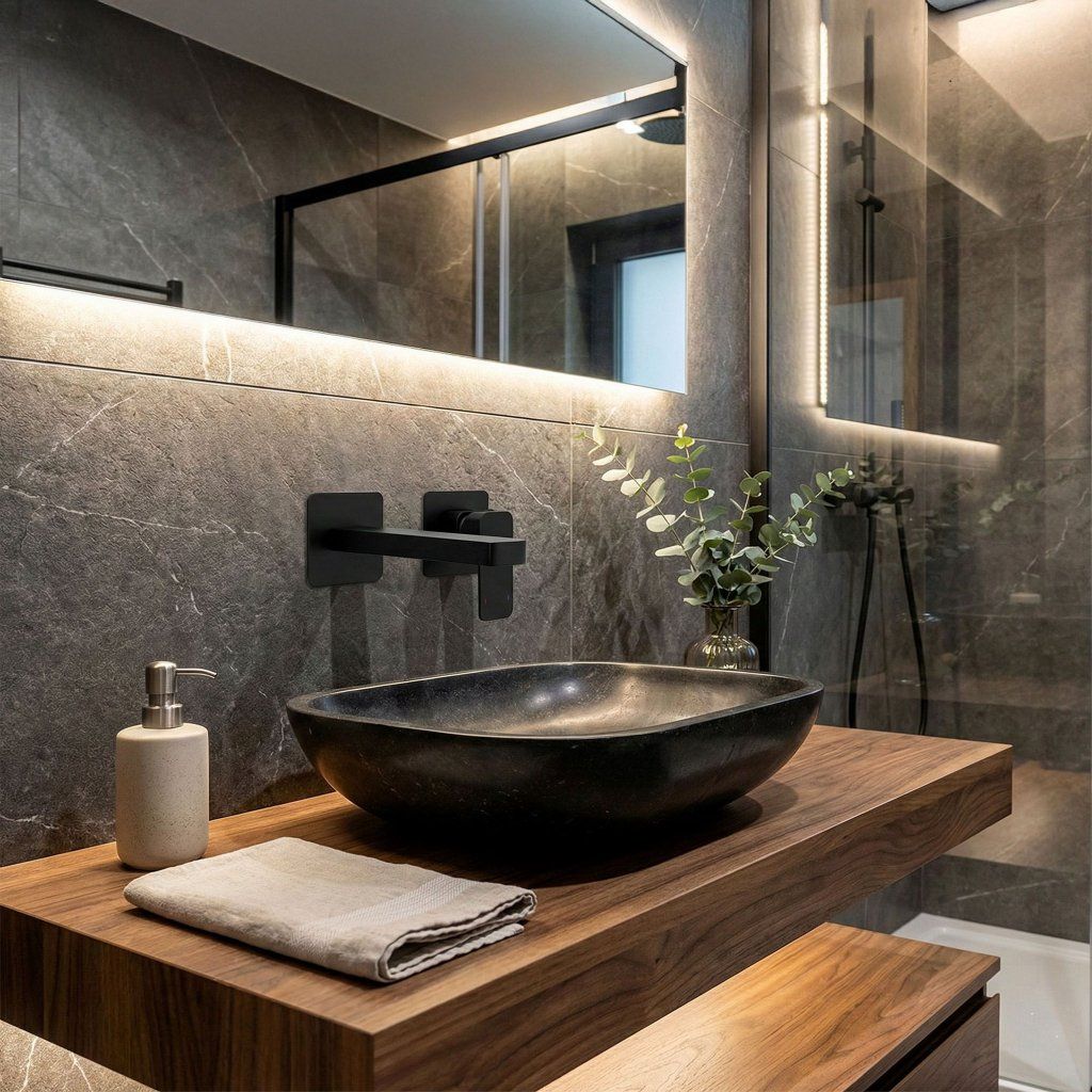 elegantní černá matná povrchová úprava vhodná do moderních koupelen