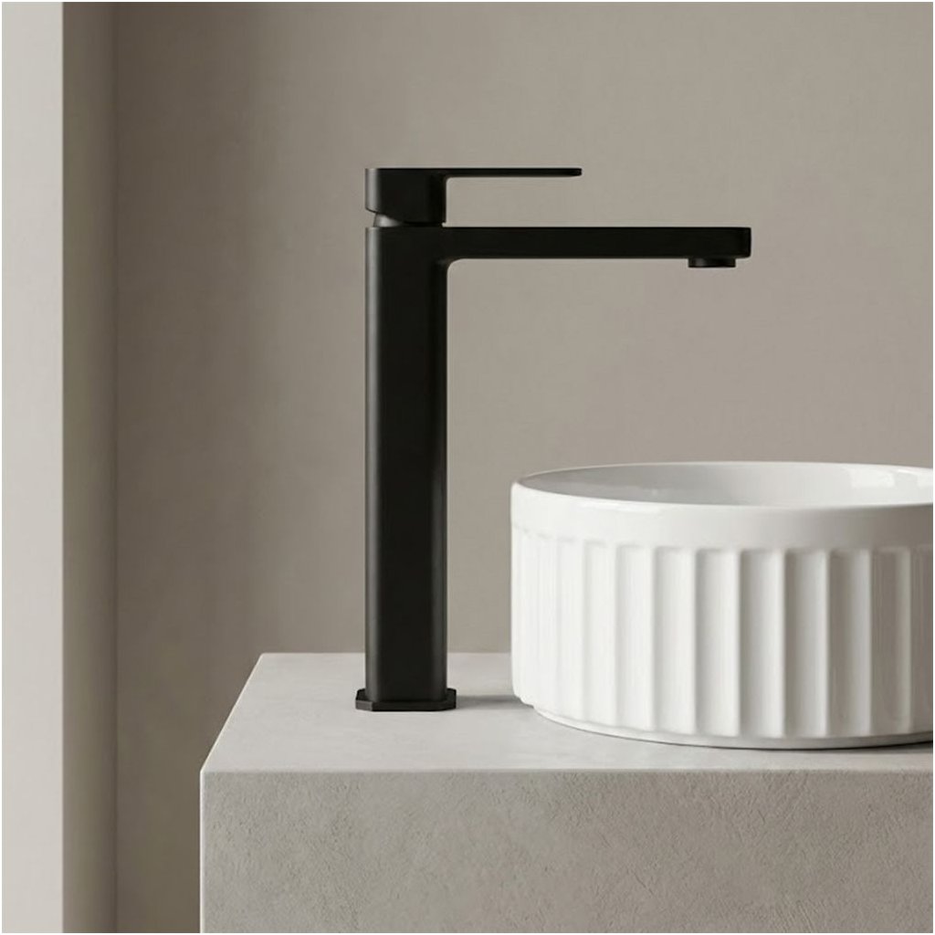 Rea Arlo, vysoká umyvadlová baterie h-295, černá matná, REA-B4586