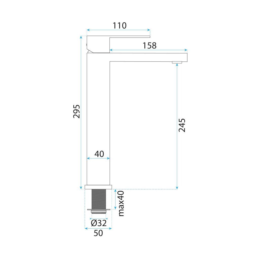 - Typ baterie: vysoká umyvadlová baterie