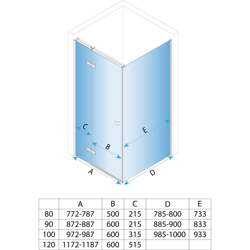 - Rozměry: 90 (dveře) x 100 (stěna) cm