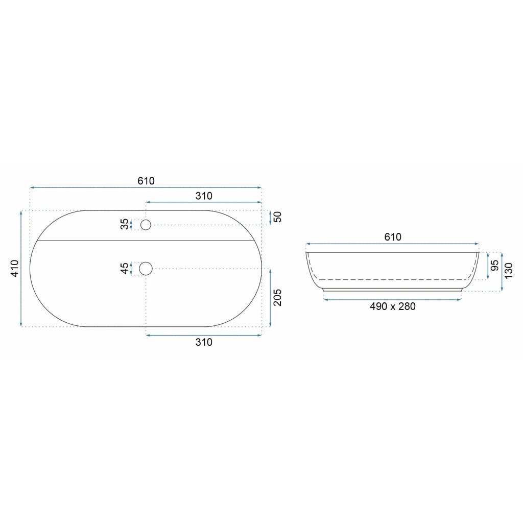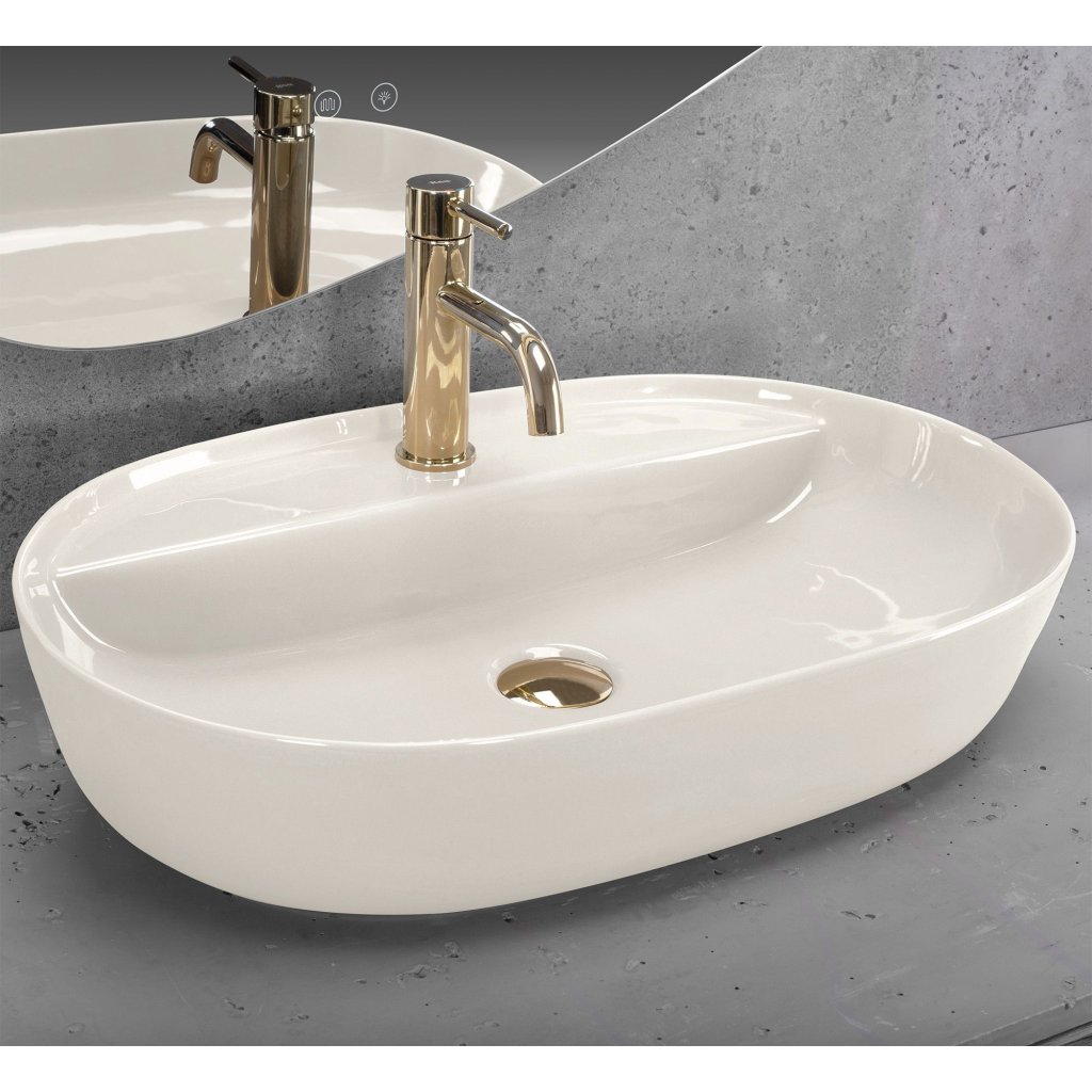 Rea Aura, umyvadlo na desku 610x410x130, ecru lesklá, REA-U4589
