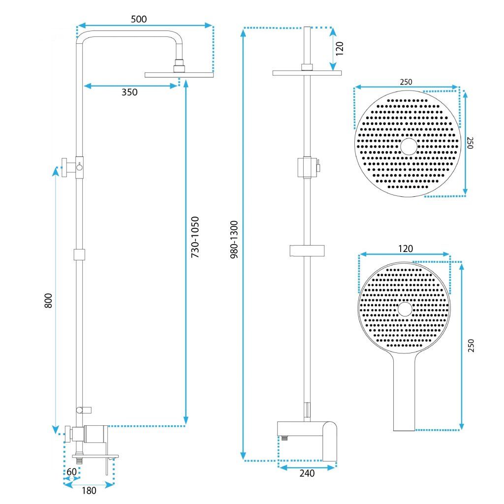 - Ruční sprchová hlavice: 3 funkce (déšť, masáž, smíšená funkce)