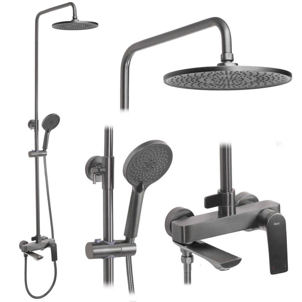 Rea Avalon, sprchová souprava s dešťovou hlavovou a ruční hlavicí, grafitová, REA-P2401