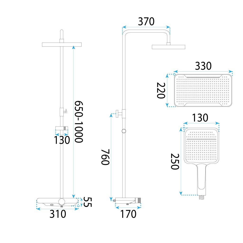 - Rozměry dešťové sprchy: 33x22cm