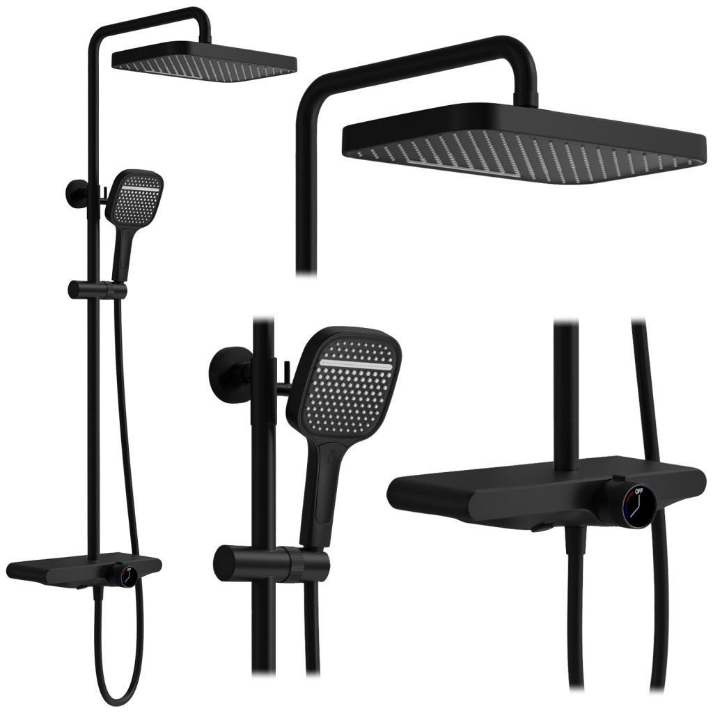 Rea Bari, sprchový set s hlavovou a ruční sprchovou hlavicí, černá matná, REA-P0891