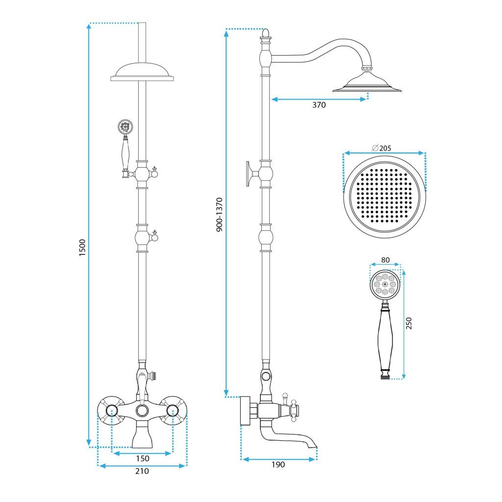 - Nastavitelná výška sloupu: 900-1370 mm