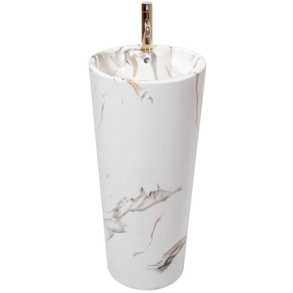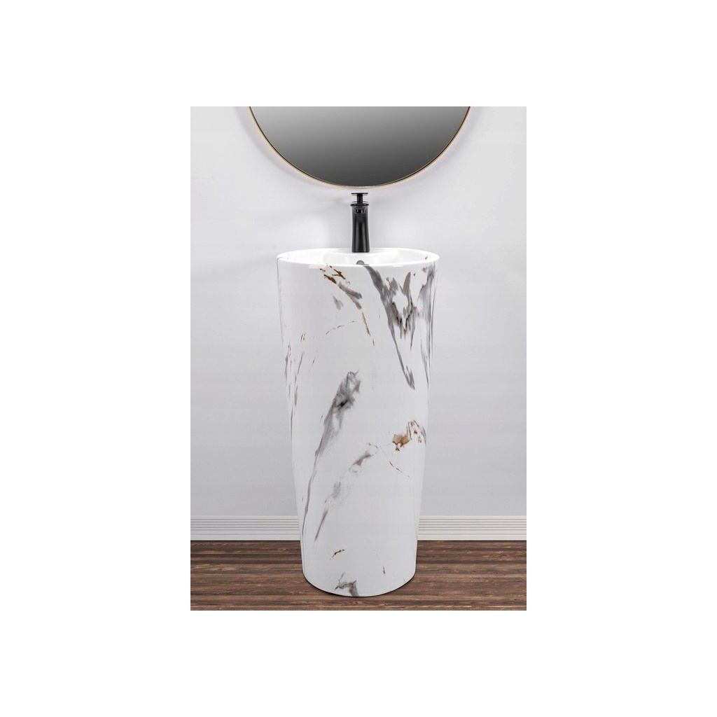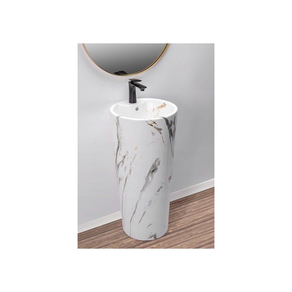 Samostatně stojící keramické umyvadlo Blanka Marble Matt je jedinečný monolitický výrobek v podobě podstavce. Neuvěřitelně moderní design se perfektně hodí do každé stylově zařízené koupelny. Velké rozměry a klasický kulatý tvar mísy z ní dělají ideální prvek vybavení do vaší koupelny. Jedinečná, přirozená barva se dokonale hodí k jiným barevným paletám, jako jsou hnědá, zelená, klasická bílá a mimořádně výrazná černá.