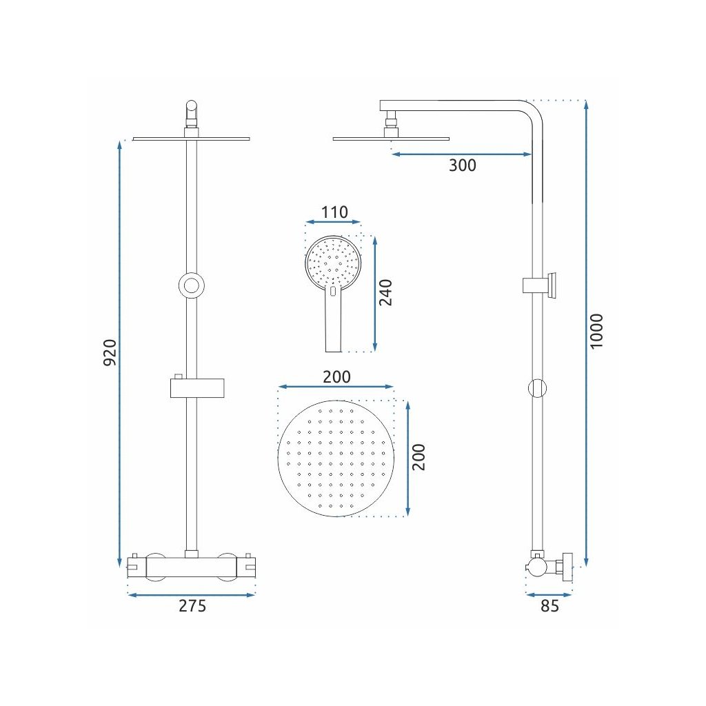 - Souprava obsahuje: vodovodní baterii, sprchovou hadici s ruční sprchovou hlavicí, dešťovou sprchu, držák na hlavici
