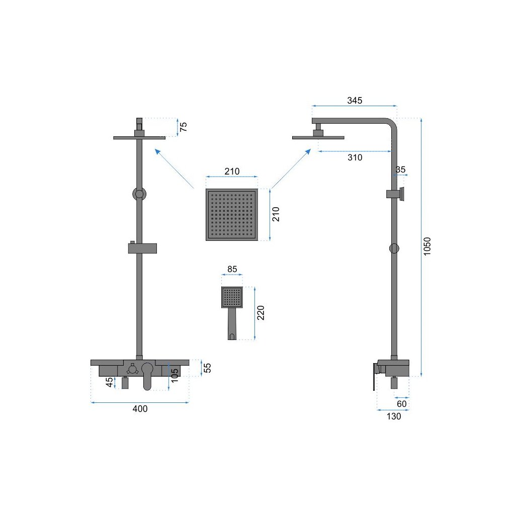 - Velikost dešťové sprchy: 21 x 21 cm , ultra tenká