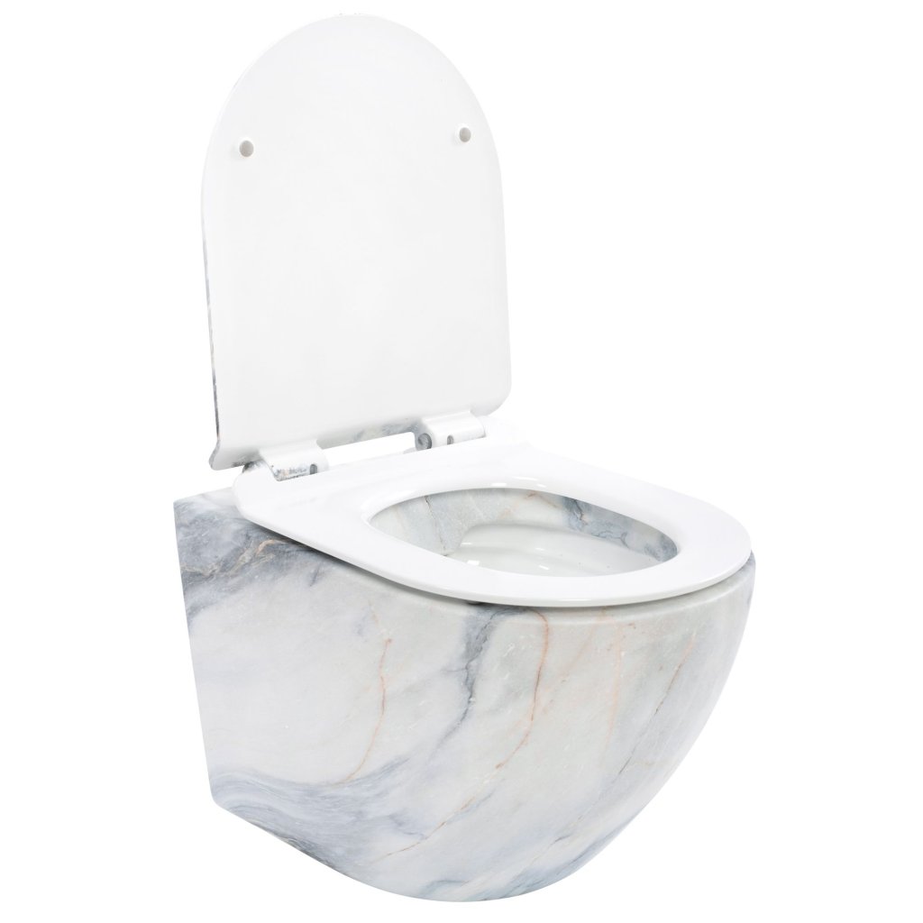 Rea Carlos, závěsná WC mísa Rimless 495x370x355 mm + toaletní sedák z duroplastu, imitace kamene Granit matný, REA-C8003