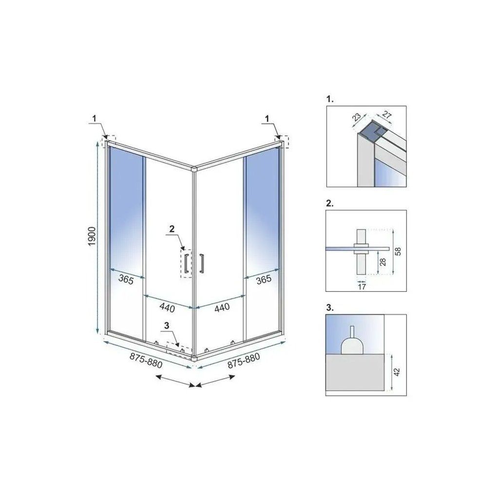 | Typ: | Rohový - 2-stranný, posuvné dvere |