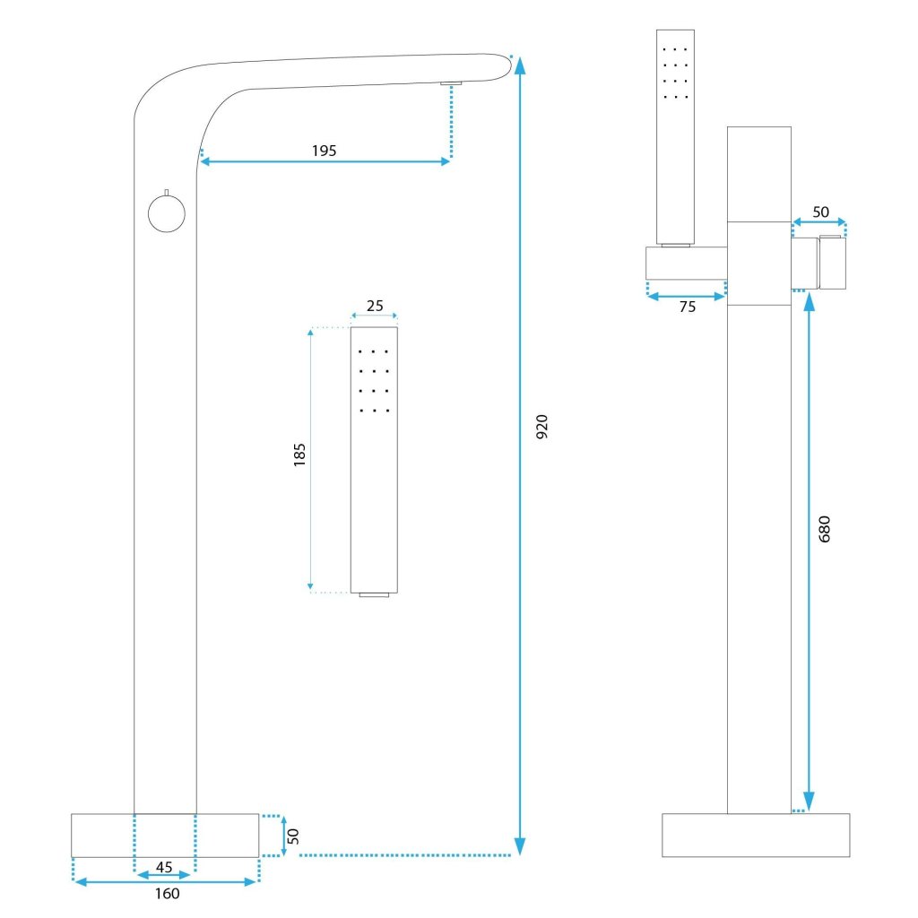 - Rozměry ruční sprchy: 18.5 x 2.5 cm