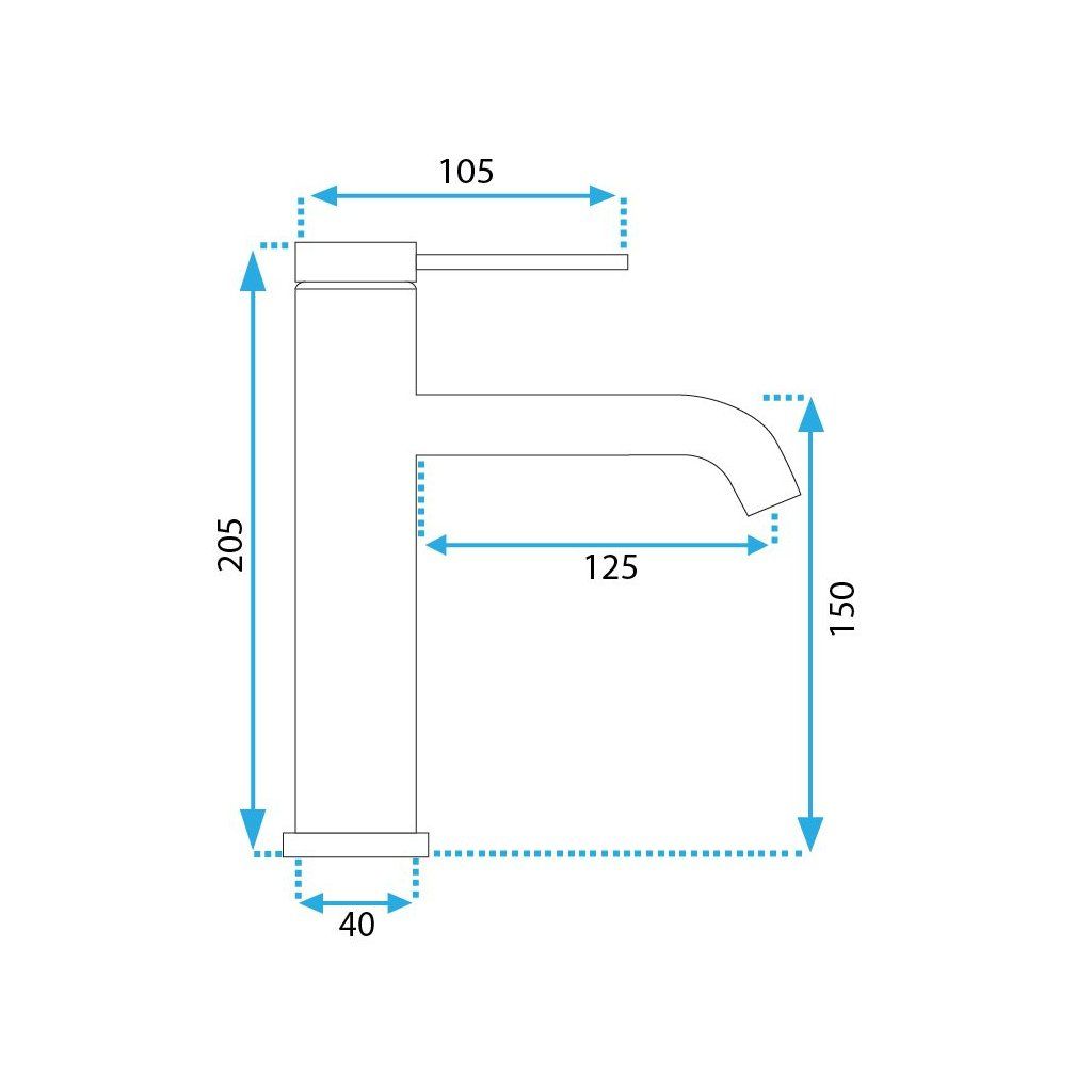 - Dosah výtoku: 125 mm