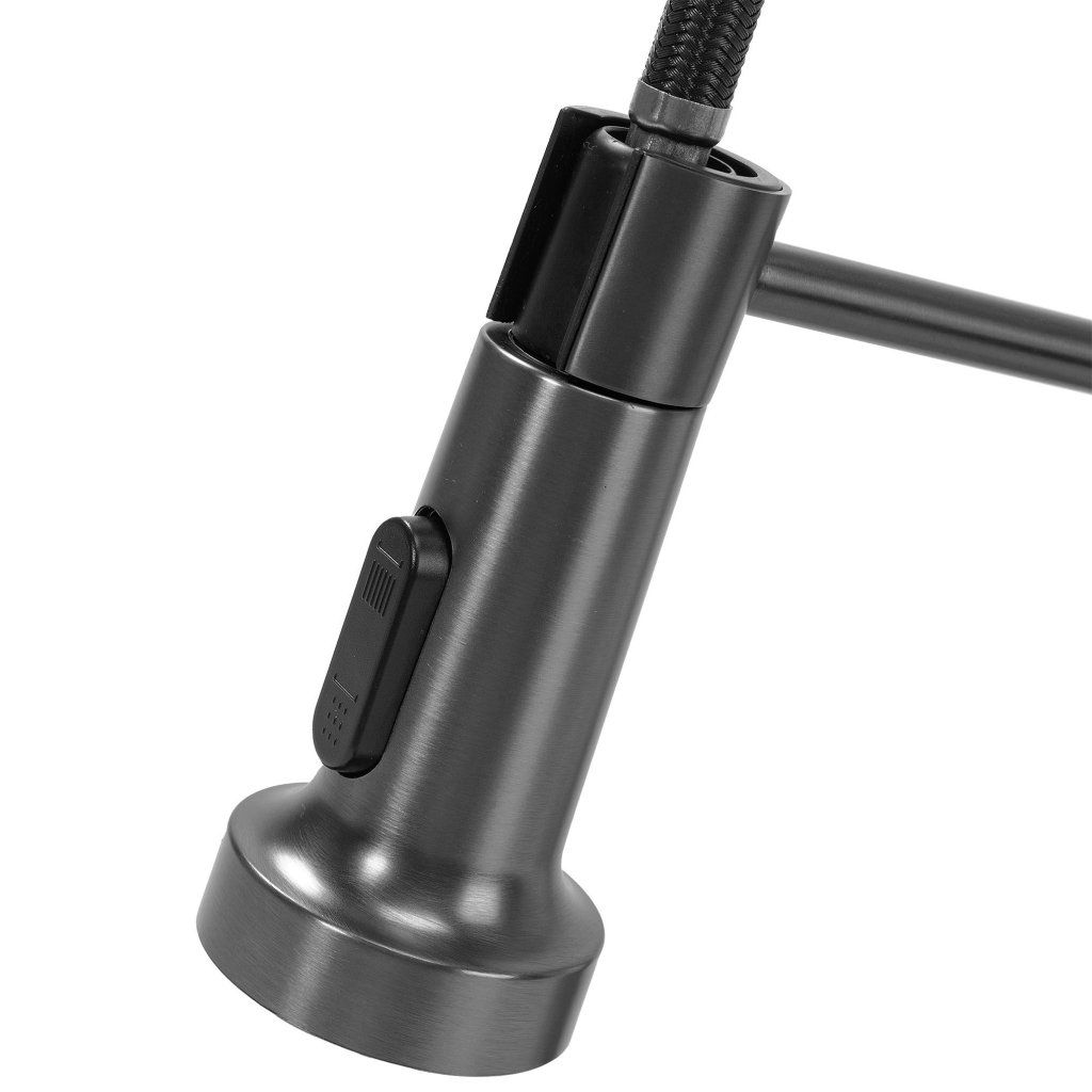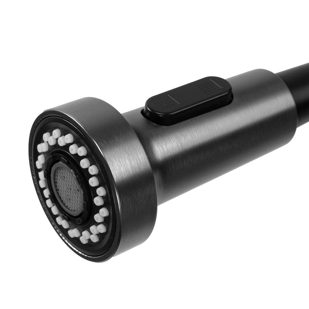 Flexibilní výsuvné rameno o dosahu 175 mm umožňuje volnou manipulaci s proudem vody po celé ploše dřezu – mytí velkých hrnců, plechů i přesné oplachování rohů vaničky je s ním snadné a intuitivní. Dvoufunkční koncovka s přepínačem umožňuje okamžitou změnu mezi soustředěným proudem a rozptýleným sprchovým proudem.