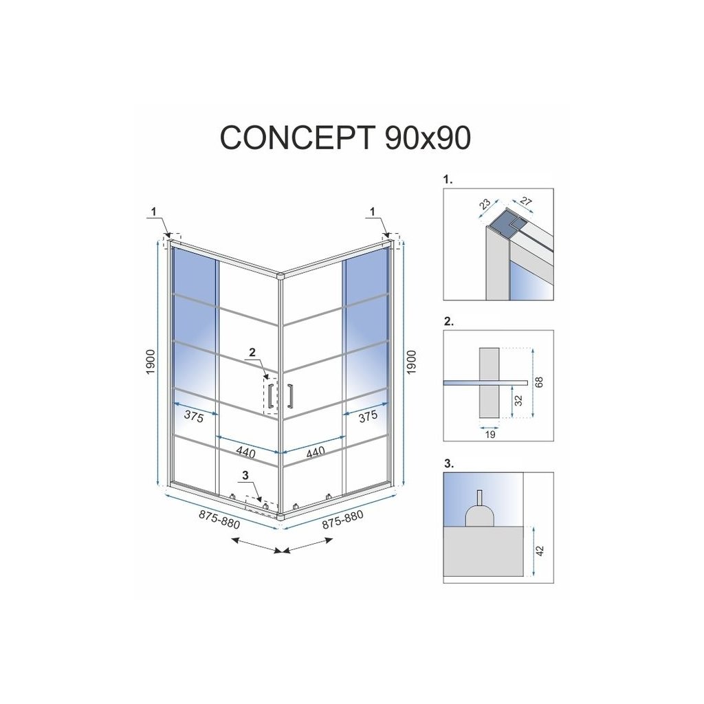 - Typ výrobku: čtvercový rohový sprchový kout