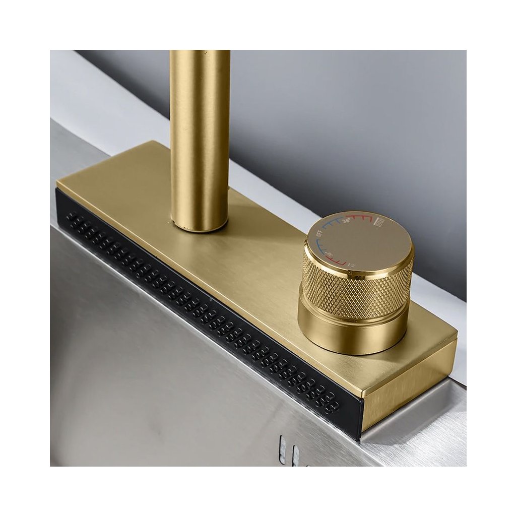 Špička výtoku má přepínač, který vám umožňuje libovolně si vybrat mezi třemi proudy vody v závislosti na vašich potřebách. Baterie je vybavena snadno použitelným knoflíkem, který umožňuje přesné nastavení teploty a tlaku vody.