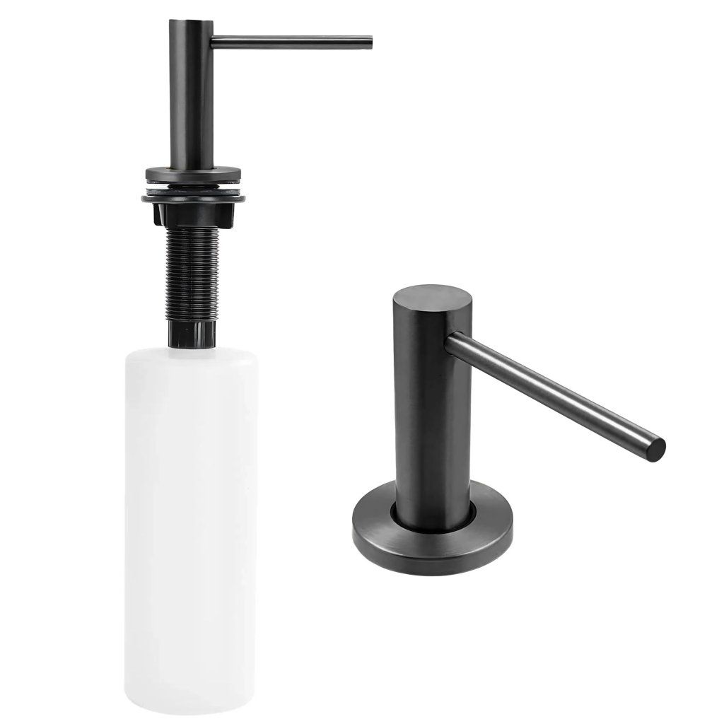 Tělo dávkovače je vyrobeno z odolného plastu, zatímco viditelné kovové části jsou povrchově upraveny v titanovém odstínu. Výsledkem je produkt, který odolává každodennímu používání a vlhkému prostředí kuchyně.