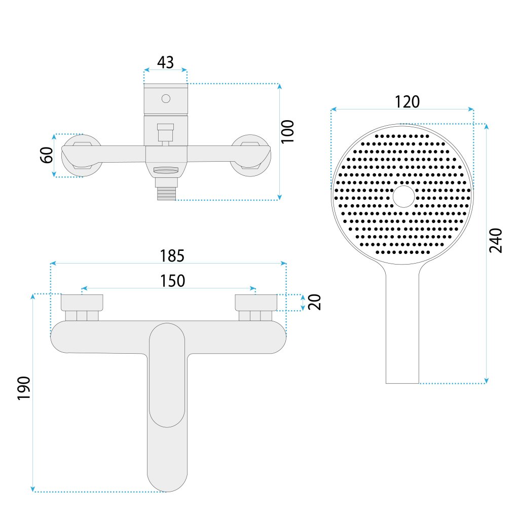 Rea Drop, vanová baterie s ruční sprchovou soupravou, 150 mm, měděná matná, REA-B6397