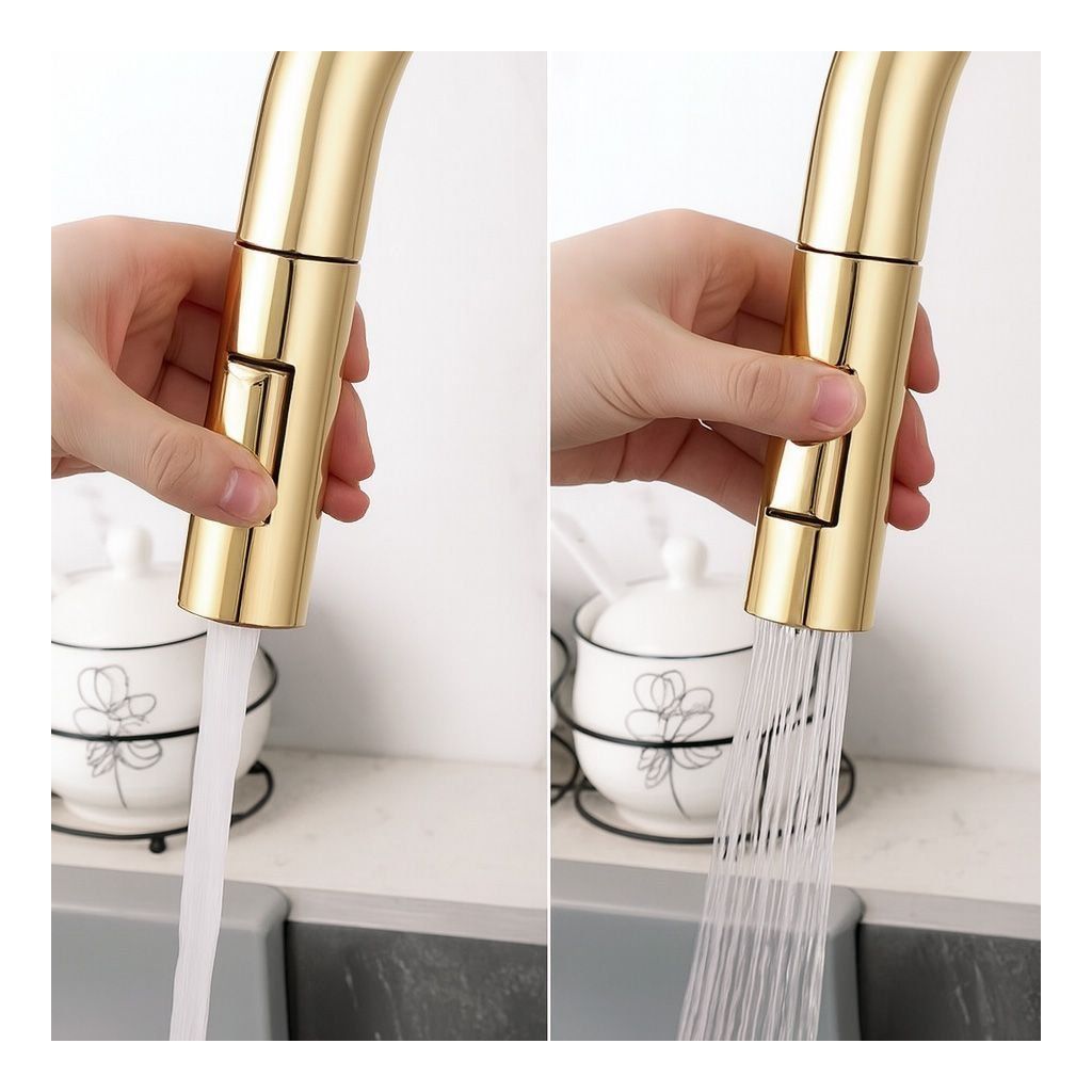 ➡️ Baterie je vybavena otočným tělem, které umožňuje volně nastavit směr proudu vody. Proudový spínač umožňuje rychlou změnu typu proudu vody, což vám umožní přizpůsobit jej různým úkolům v kuchyni - od plnění hrnců až po mytí zeleniny, což poskytuje pohodlí a efektivitu při každodenním používání.