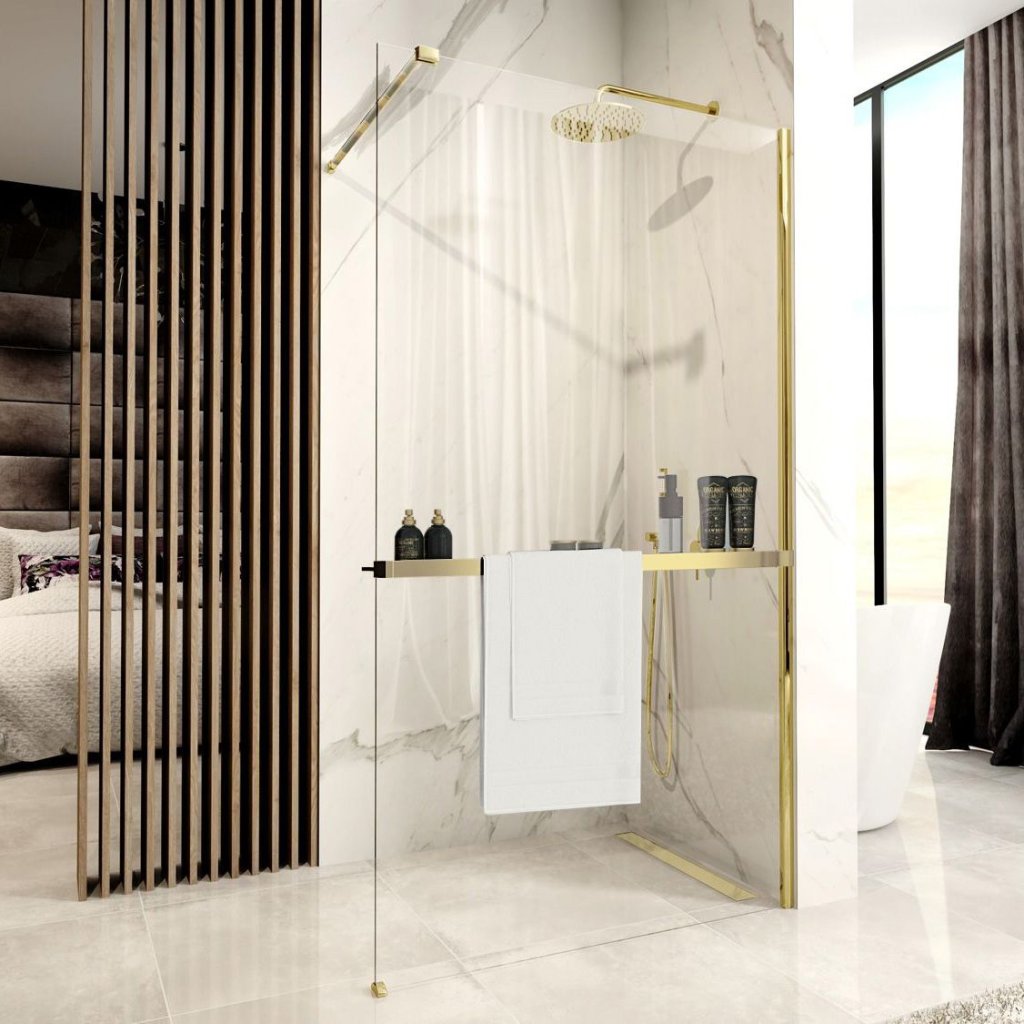 Rea Evo, závěsná police pro sprchové zástěny typu Walk-in Max. šířka 120 cm, zlatá matná, REA-46000