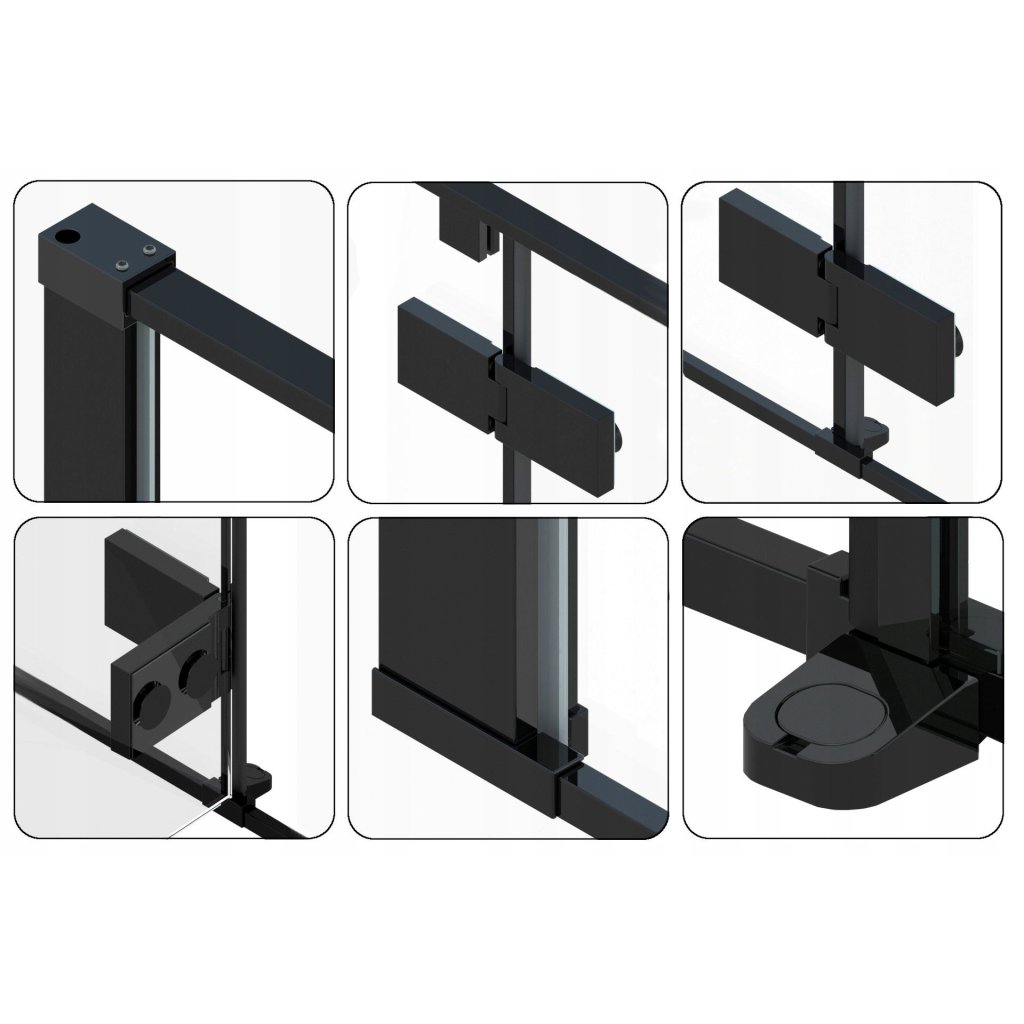 Rea Fargo, sprchový kout s křídlovými dveřmi 90 (dveře) x 90 (stěna) x 195 cm, 6mm čiré sklo, černý profil + černá sprchová vanička Savoy, KPL-K7318