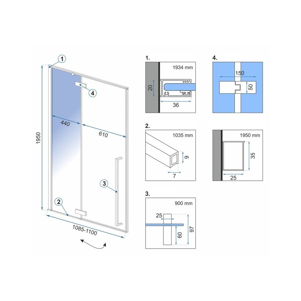 - Rozměr dveří: 110 cm (montážní otvor: 1085 - 1100 mm)