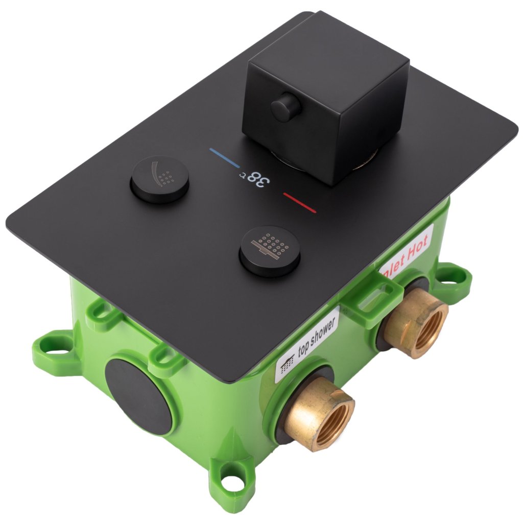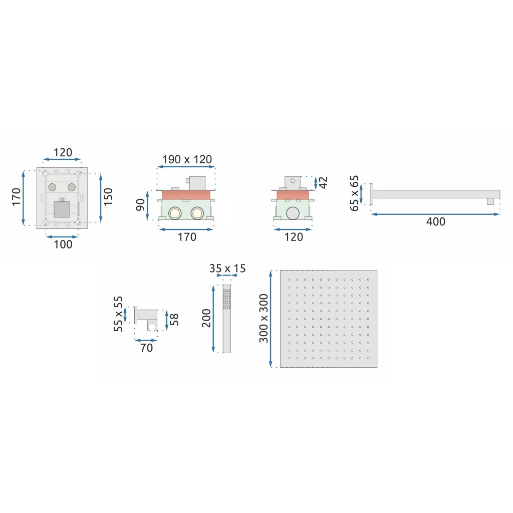 - Dešťová hlavová sprcha + podomítkové rameno + krytka baterie s tělesem + ruční sprchová hlavice + sprchová hadice + krabice pro snadnou instalaci