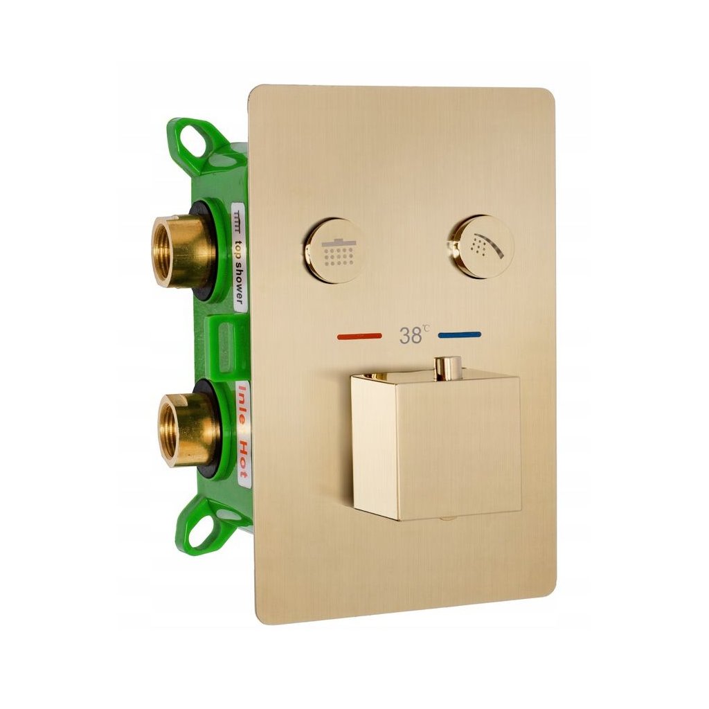 Rea Fenix Davis, podomítkový sprchový set + box s dešťovou a ruční sprchou, zlatá matná, REA-P6358